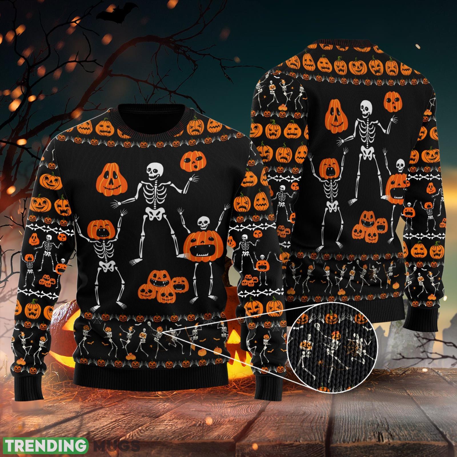 Happy Halloween Dancing Skull And Pumpkin Faces Ugly Christmas Sweater Unisex 3D Sweater Christmas Gift