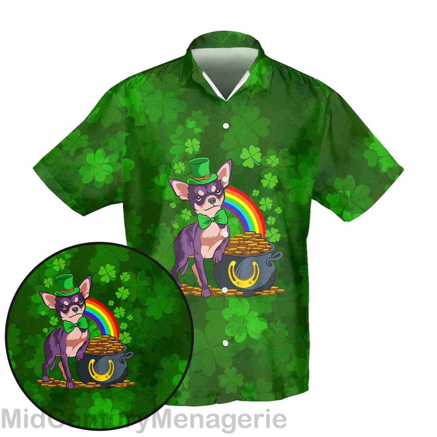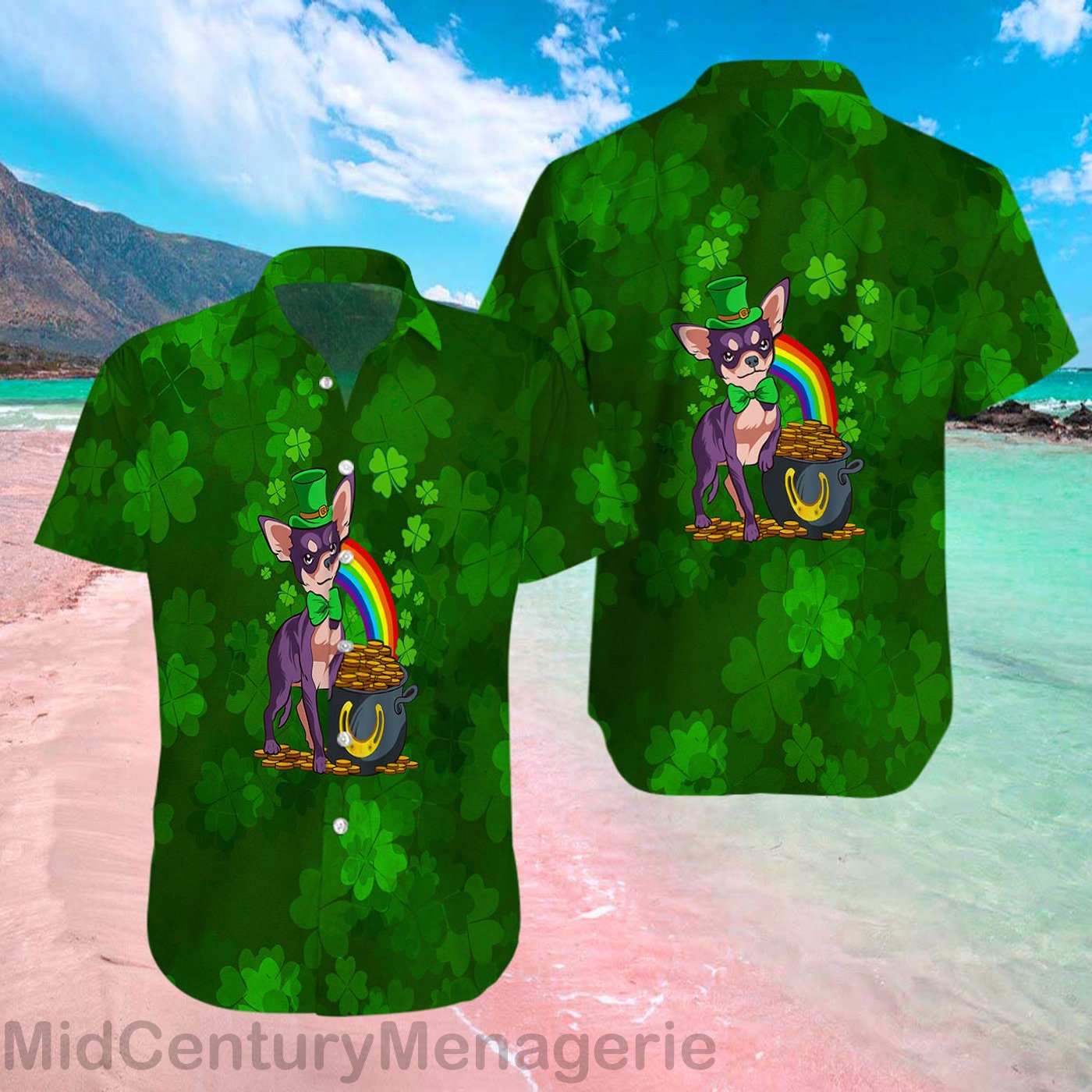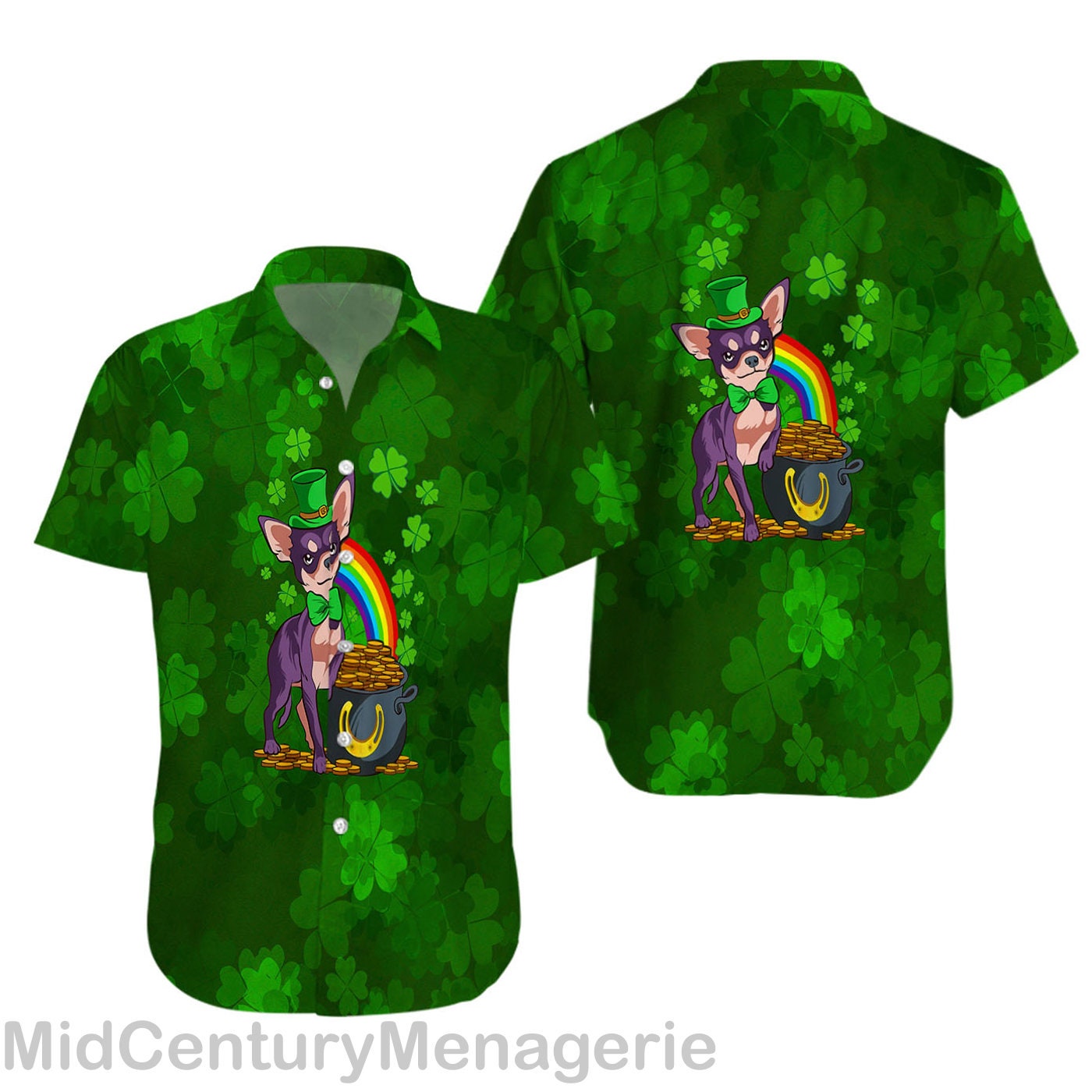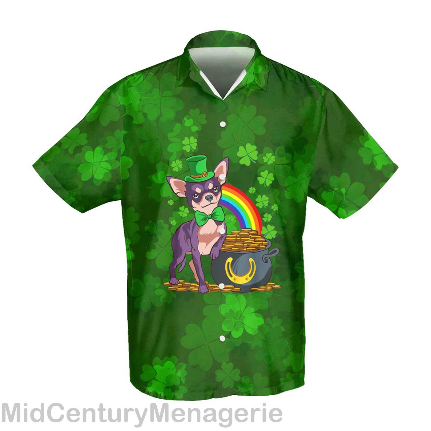 Happy St Patrick’s Shirt, Irish Chihuahua Dog Shirt, Lucky Shamrock Shirt, Irish Summer Style 3 Hawaiian Shirt Details: