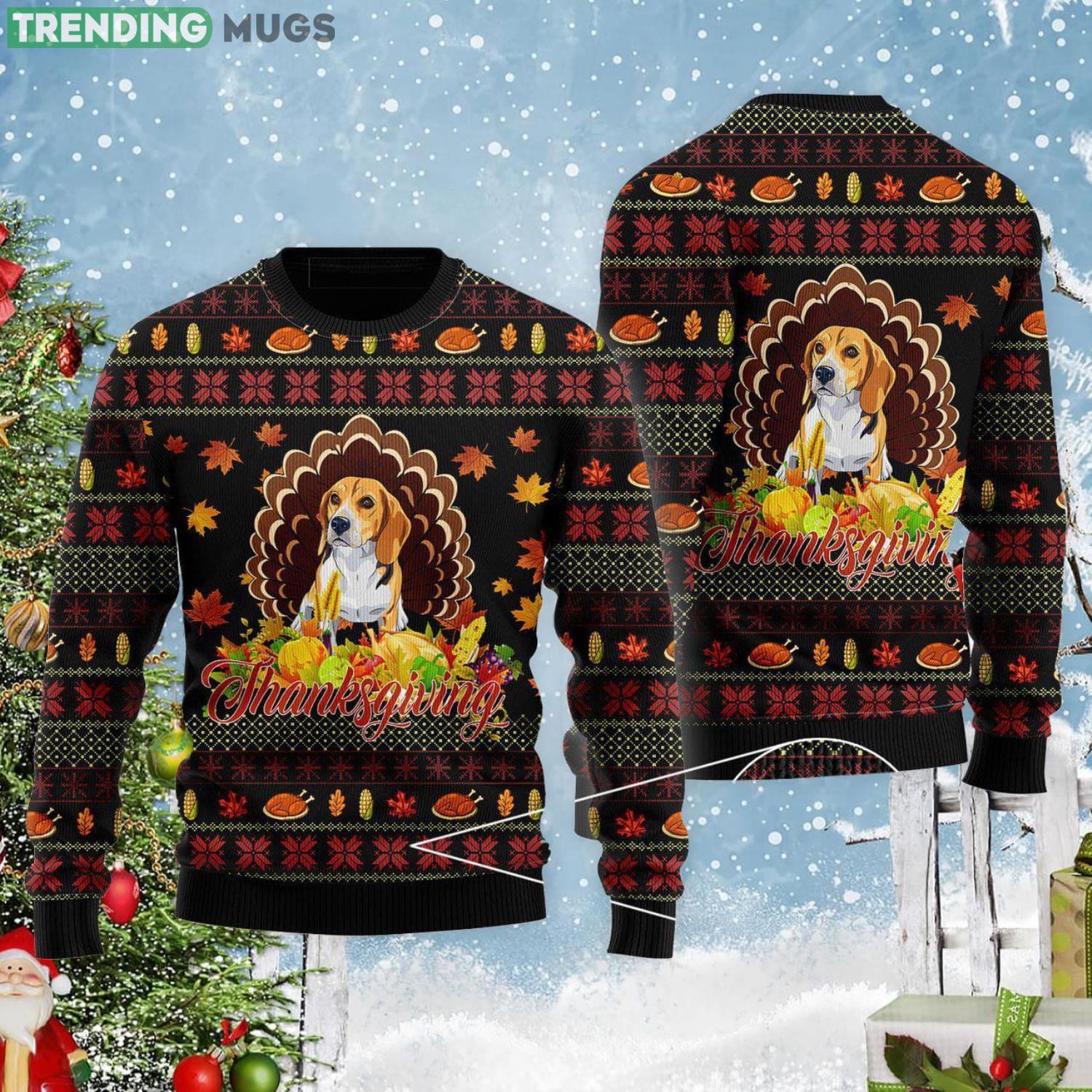 Happy Thanksgiving Funny Beagle Dog Christmas Gift Ugly Christmas Sweater Product Photo 1