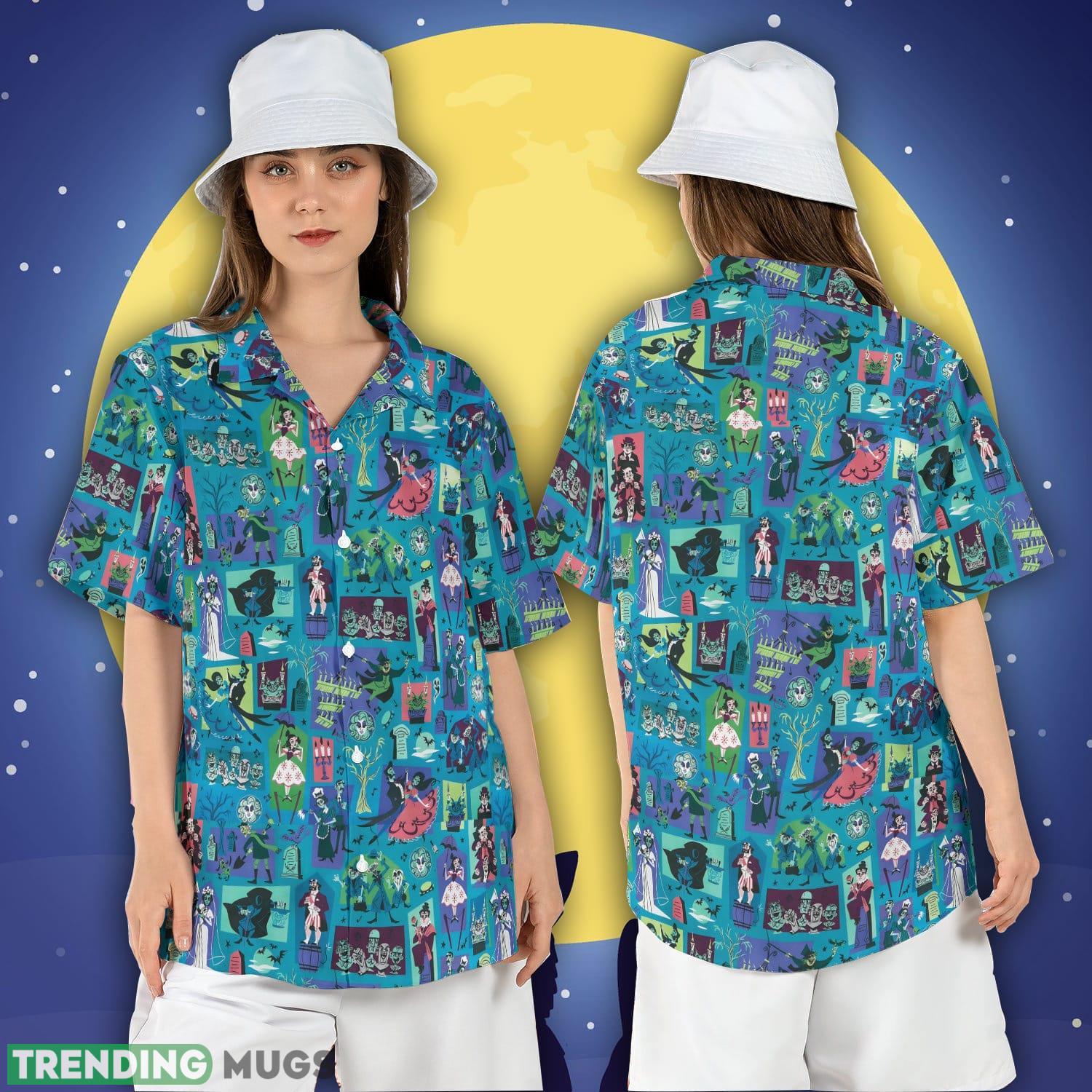 Crafted with meticulous attention to detail, this hauntingly stylish shirt features a unique blend of spooky motifs and tropical vibes. Its mesmerizing design showcases the iconic Haunted Mansion, adorned with chilling ghosts and ghouls lurking amidst the lush Hawaiian landscape. Whether you’re a fan of horror movies or simply crave a touch of macabre magic, this shirt will make you stand out at any Halloween party or themed event.