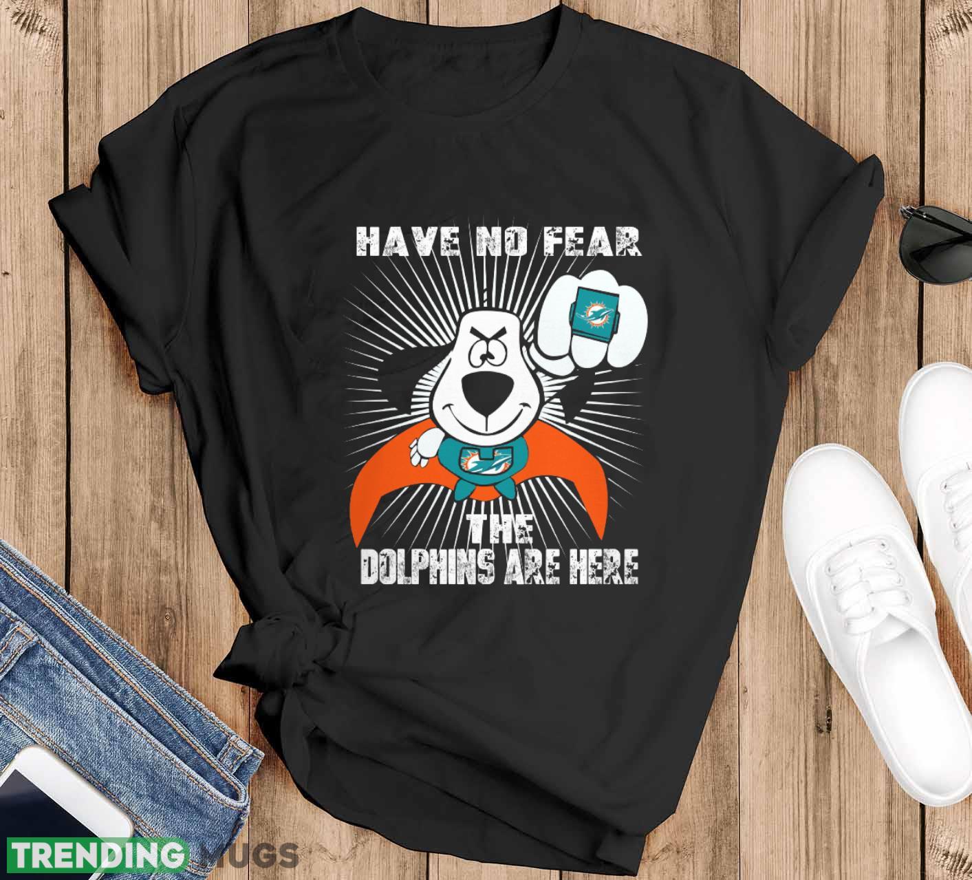 Don’t miss out on the chance to express your love for the Miami Dolphins with our “Have No Fear The Miami Dolphins Are Here” Funny Black T-Shirt Sweatshirt. Order yours now and join the ranks of proud Dolphins fans around the world!