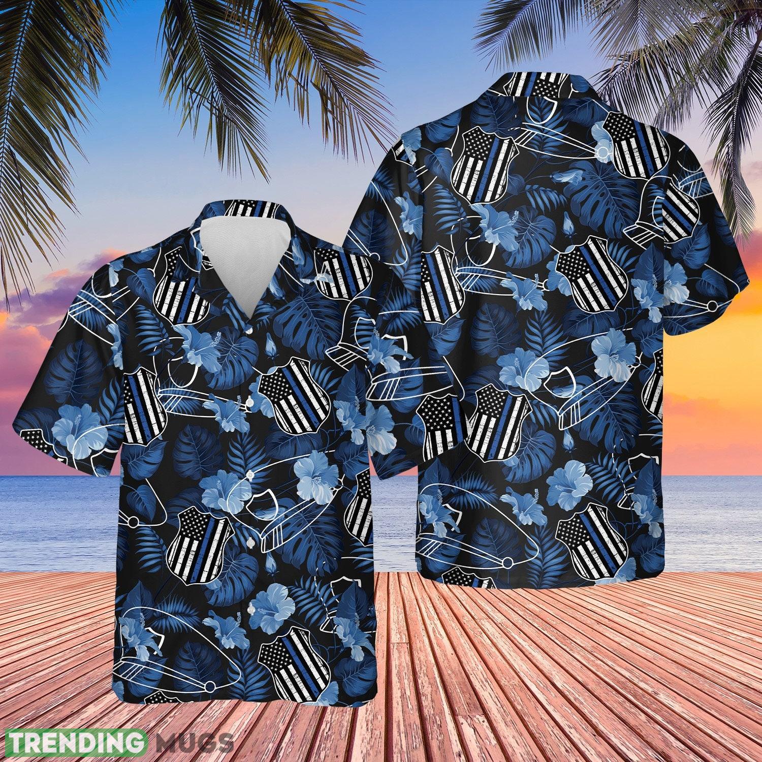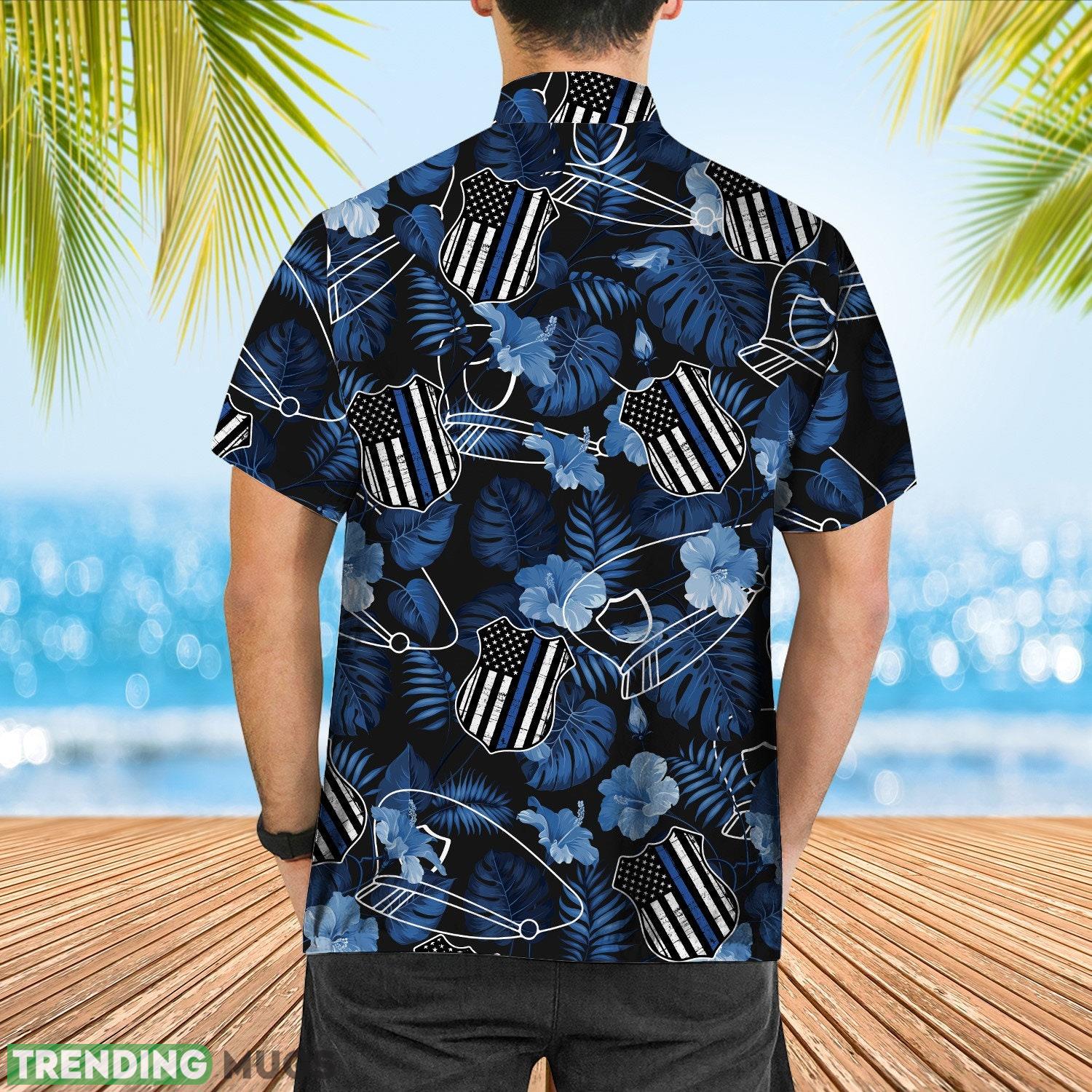 Hawaiian Police Thin Blue Line Shirt Police Shirt Police Beach Shirt Police Dad Shirt Tropical Shirt Details: