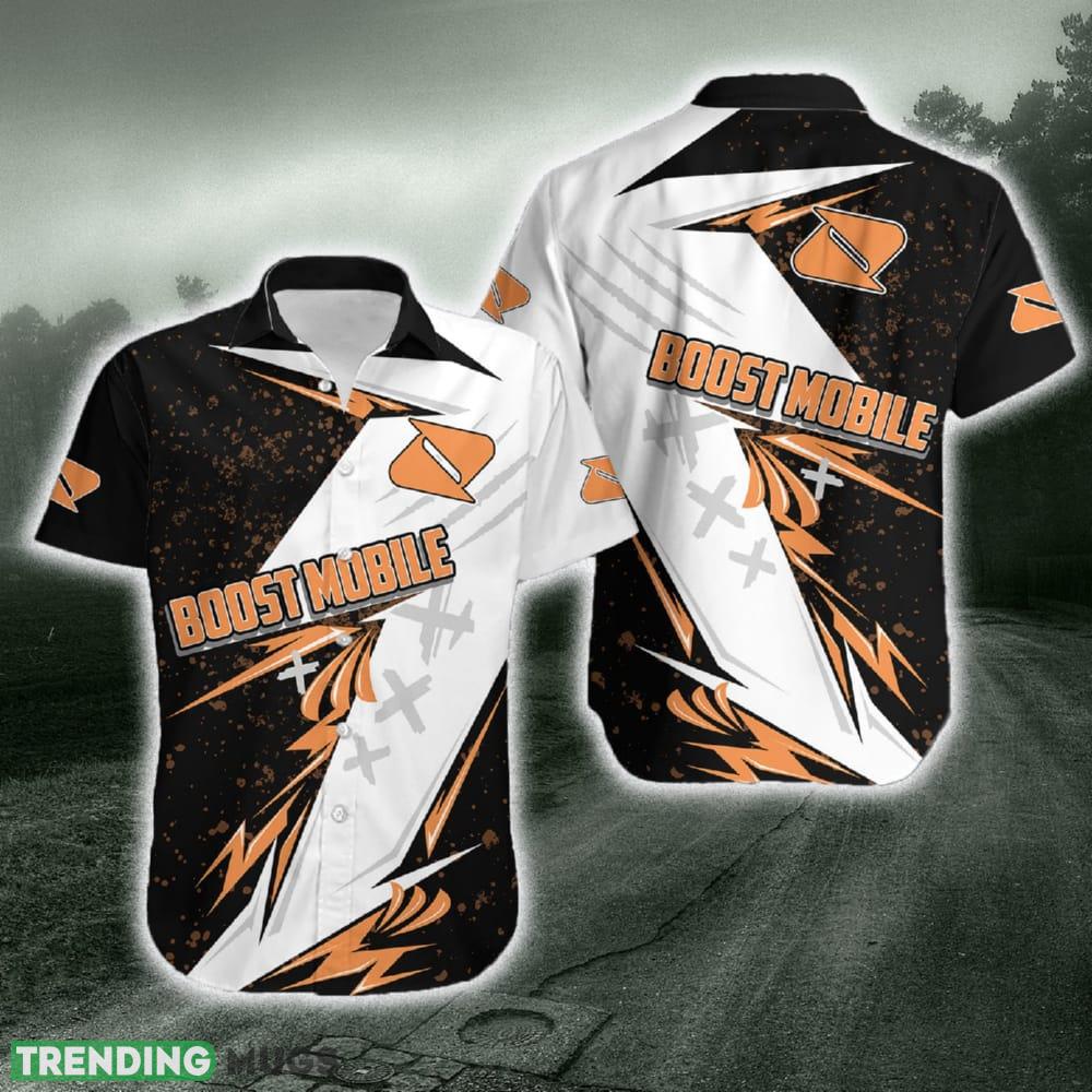 Crafted with utmost care, our Hawaiian Shirt Boost Mobile showcases a stunning blend of traditional Hawaiian patterns and contemporary style. The colorful print features an array of tropical elements, from palm trees and hibiscus flowers to surfing boards and coconuts, guaranteeing that you’ll stand out from the crowd wherever you go.