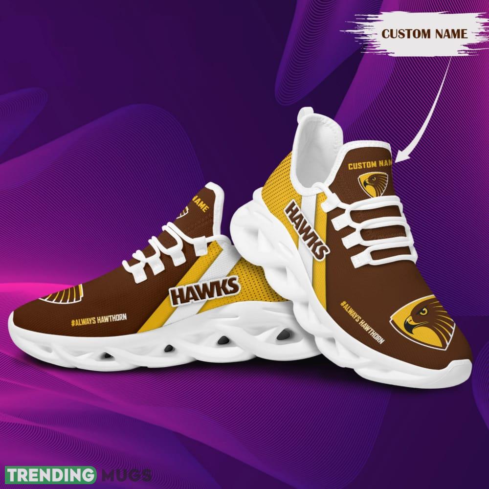 Hawthorn Hawks Logo Custom Name Pattern 3D Max Soul Sneaker Shoes In Yellow And Brown are the epitome of style and comfort. Step up your shoe game with these unique and personalized sneakers that showcase your love for the Hawthorn Hawks.