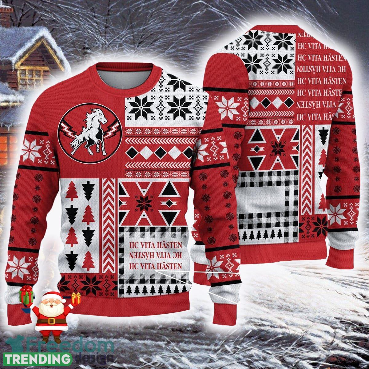 The HC Vita Hästen Summer shl hockeyallsvenskan Ugly Christmas Sweaters are not just a fashion statement, but a symbol of your devotion to your beloved team. The vibrant team colors, combined with the iconic logo, make for a striking and eye-catching look. Show off your team spirit in style!