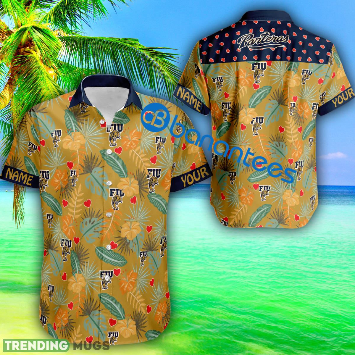 Some of the Heart Pattern FIU Panthers Custom Name Hawaiian Shirt Short Sleeve Gift Valentines Day photos