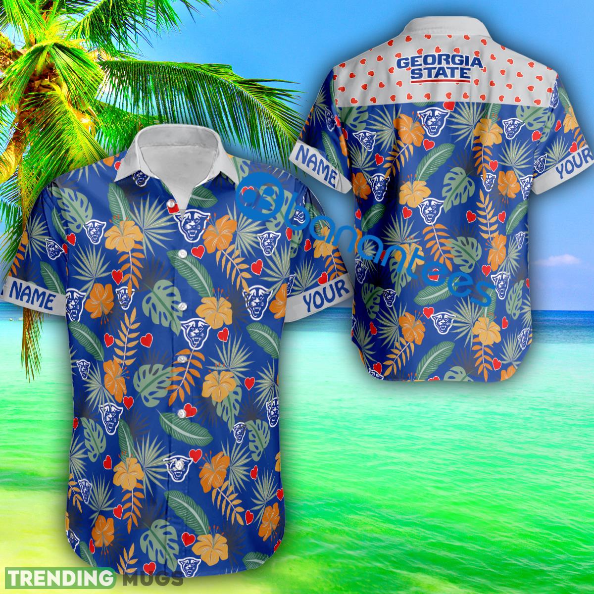 Heart Pattern Georgia State Panthers Personalized Hawaiian Shirt Short Sleeve Valentines Day Details: