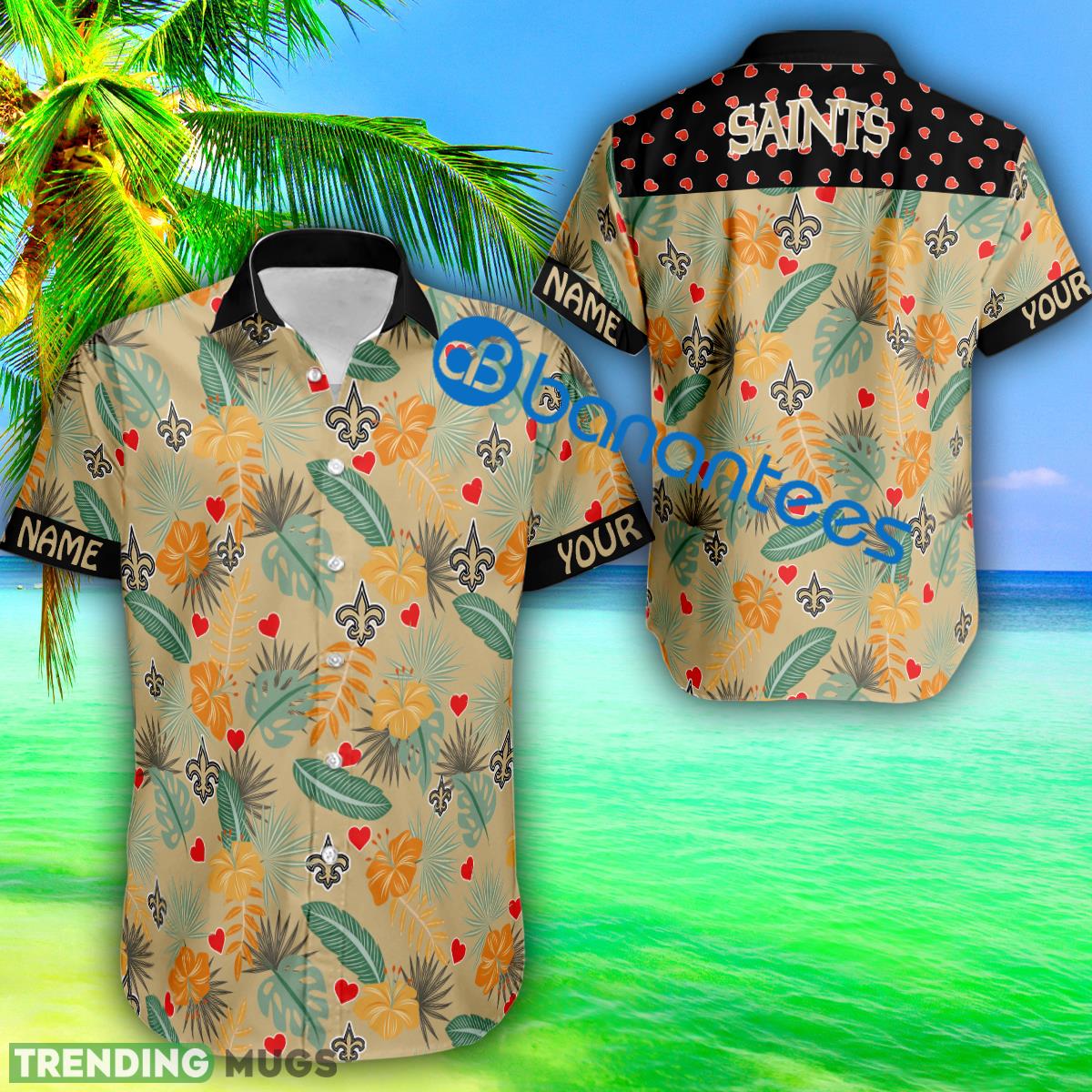 Heart Pattern New Orleans Saints Custom Name Hawaiian Shirt Short Sleeve Gift Valentines Details: