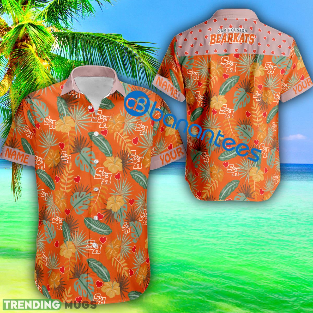 Heart Pattern Sam Houston Bearkats Personalized Hawaiian Shirt Short Sleeve Valentines Day Details: