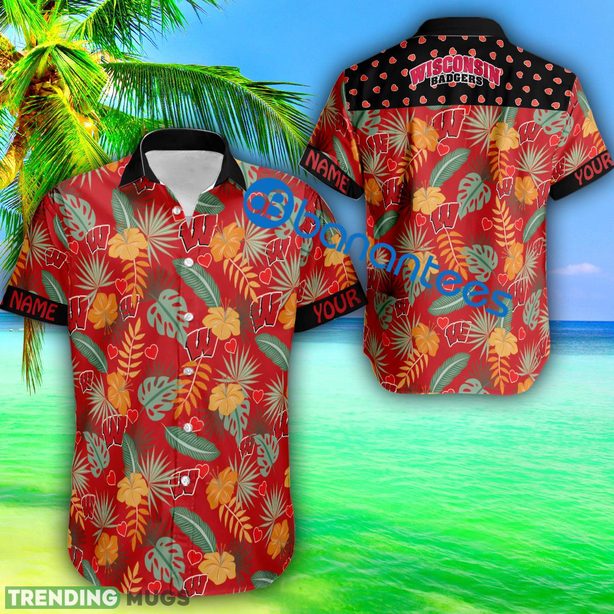 Designed with a vibrant heart pattern, this Hawaiian shirt adds a fun and playful twist to the classic Badgers apparel. The custom name feature allows you to personalize the shirt with your own name or the name of a loved one, making it an ideal gift for any Wisconsin fan.