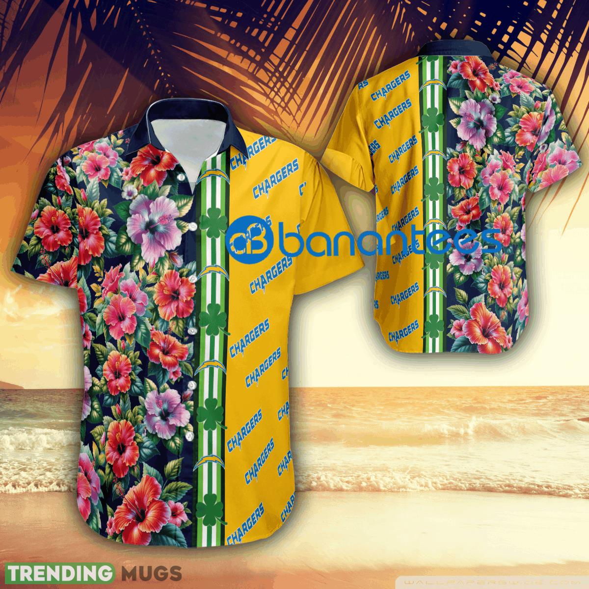Featuring the iconic Los Angeles Chargers logo in stunning 3D detail, this shirt is a true standout. The hibiscus flower design adds a touch of tropical flair, making it ideal for any occasion, from game days to backyard barbecues.