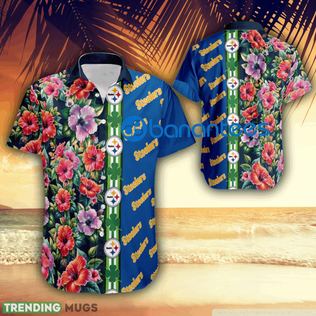 Hibiscus Flower Pittsburgh Steelers Logo Hawaiian Shirt Gift Patricks Day Details: