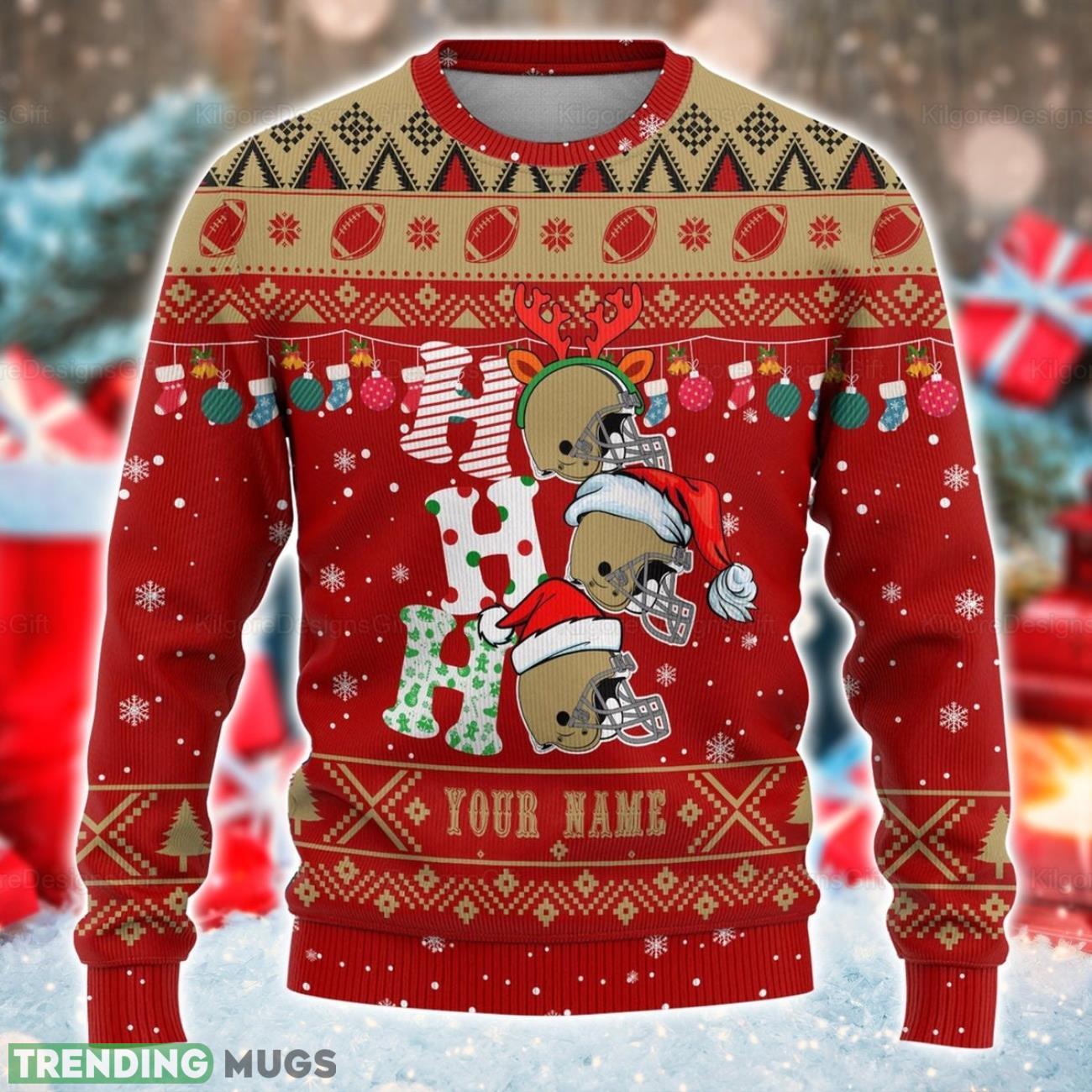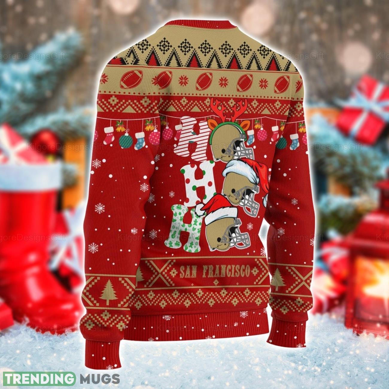 Featuring the iconic “Ho Ho Ho” phrase, personalized with your own name, and embellished with a charming San Francisco Christmas design, this sweater is sure to make you the star of any holiday gathering.