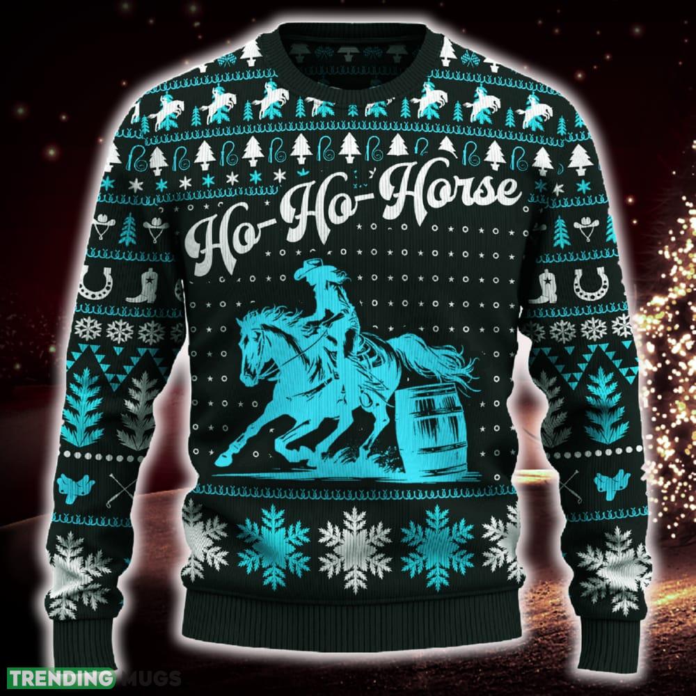 Ho-Ho-Horse Barrel Racing Cowgirl Snowflakes Knitted Christmas Sweater Trending Gift For Men And Women – Ho-Ho-Horse Barrel Racing Cowgirl Ugly Christmas Sweater_ 1