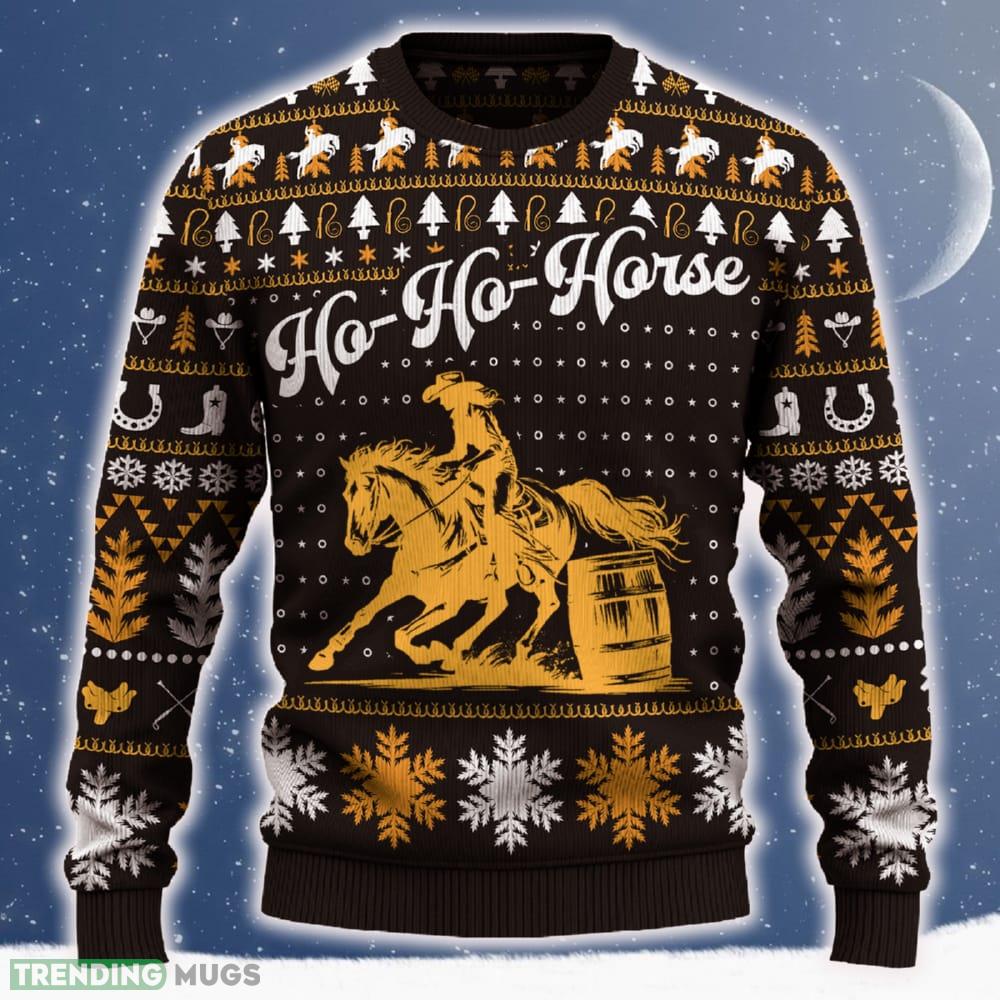 Ho Ho Horse Barrel Racing Cowgirl Ugly Christmas Sweater 2023 Trending Hot Pattern For Fans Gift Informations: