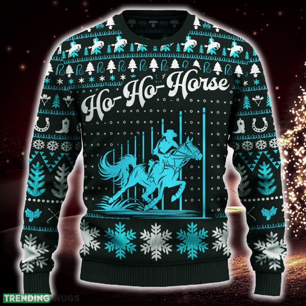 Ho Ho Horse Pole Bending Snowflakes Ugly Christmas 3D Sweater Trending Gift For Men And Women 3D Sweater