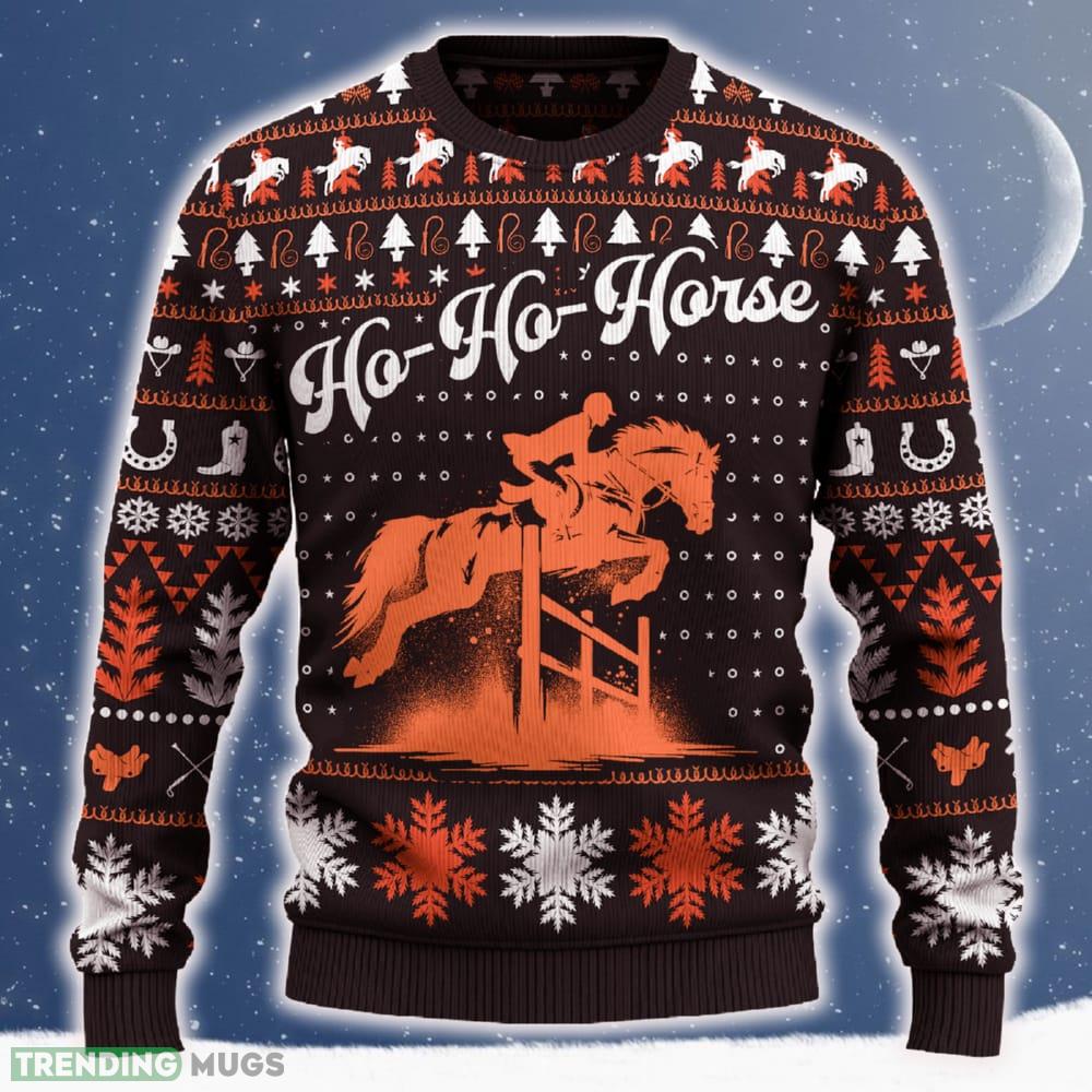Ho Ho Horse Show Jumping Christmas Tree AOP Sweater Special Gift For Men And Women - Ho-Ho-Horse Show Jumping Sweater_1