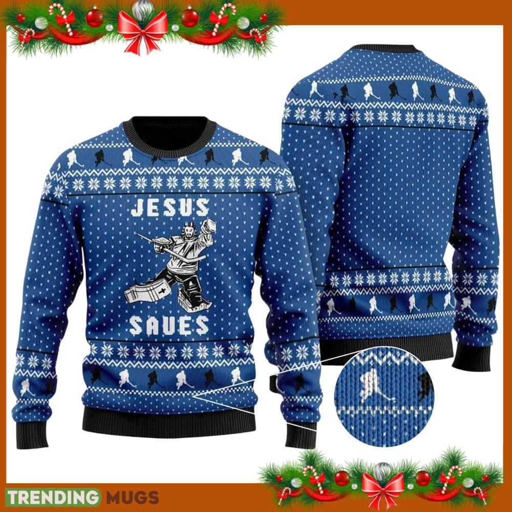 Hockey Jesus Saves Christmas Ugly Christmas Sweater Funny Gift For Men And Women Family Holidays Informations: