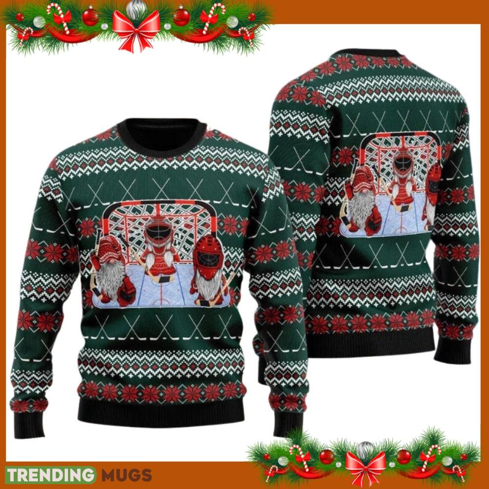 Featuring a unique design that combines the joy of Christmas with the thrill of hockey, our sweater will make you the center of attention. The vibrant colors and funny graphics showcase your passion for the game, making it an ideal choice for any hockey lover.
