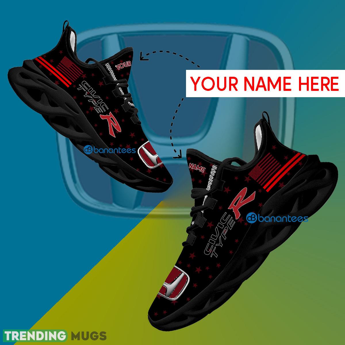 This Honda Civic Type R Car Racing Chunky Sneaker Symbolic Custom Name Gift Max Soul Shoes USA Flag Star New For Fans is a breathable, lightweight, and comfortable casual outdoor shoe that has a unique design. It is made of a mesh fabric which makes it sweat absorbent and breathable, while the rubber bottom ensures traction, comfort, and durability. It is available in two colors: black or white sole. There are two styles of shoelace holes so you can choose your preference.