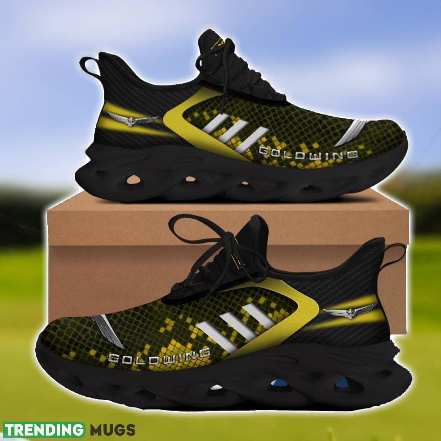 This Honda goldwing Yellow Striped Max Soul Shoes Personalized Name For Fans is a breathable, lightweight, and comfortable casual outdoor shoe that has a unique design. It is made of a mesh fabric which makes it sweat absorbent and breathable, while the rubber bottom ensures traction, comfort, and durability. It is available in two colors: black or white sole. There are two styles of shoelace holes so you can choose your preference.