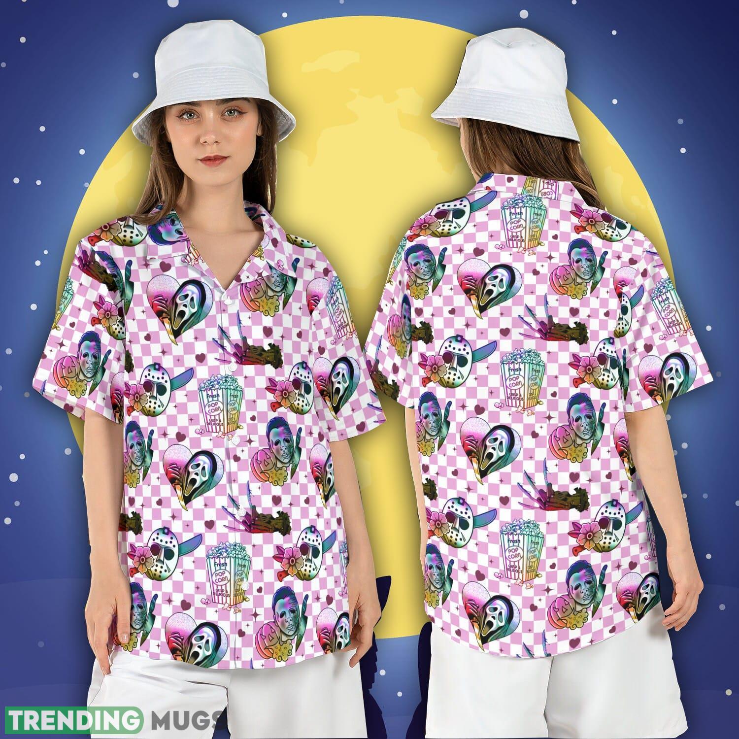 Horror Movies Halloween Hawaiian Shirt Horror Characters Checkered Button Shirt Halloween Killers Aloha Shirt Details: