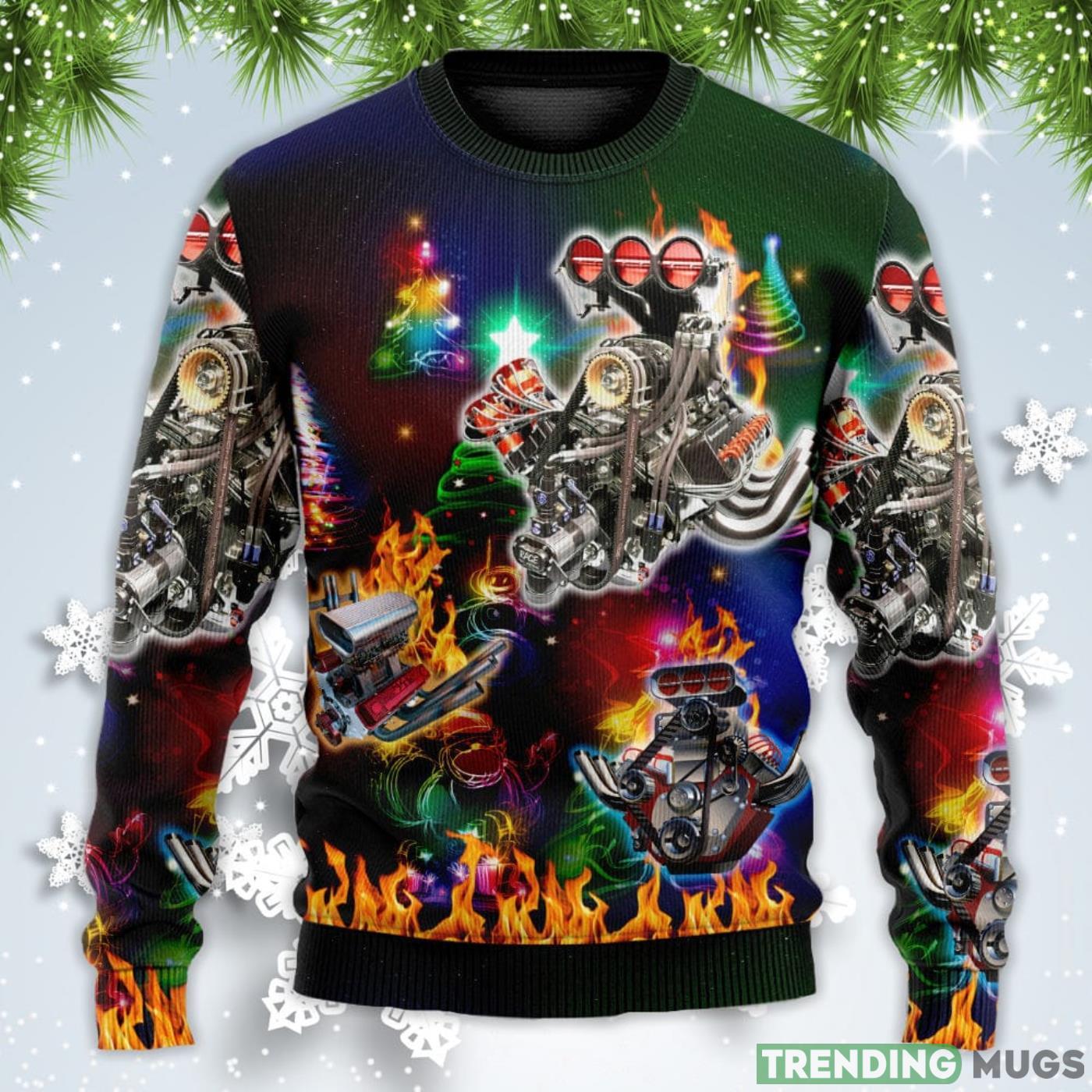 Hot Rod Tree Fire Christmas Sweatshirt Sweater Informations: