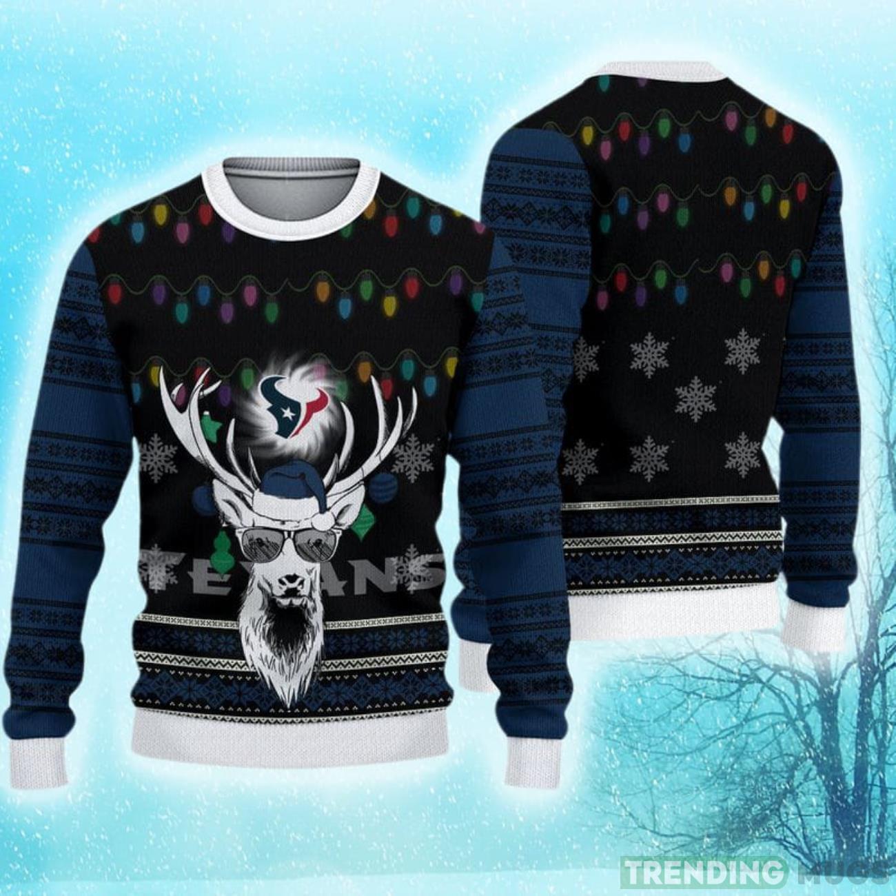 Crafted with the highest quality materials, this sweater guarantees a comfortable fit and long-lasting durability. The intricate design features a charming reindeer donning the iconic Houston Texans colors and logo, making it the perfect attire for any holiday gathering or game day celebration.