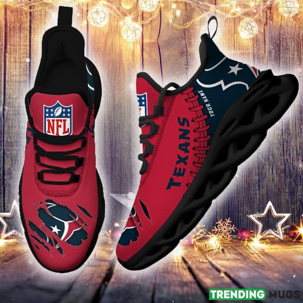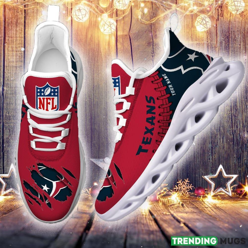 Whether you’re heading to the game, watching from home, or simply want to represent your team in style, our Houston Texans Custom Name NFL Max Soul Shoes are the perfect choice. Don’t miss out on this opportunity to showcase your team pride and individuality. Order yours now and step into the season with confidence!