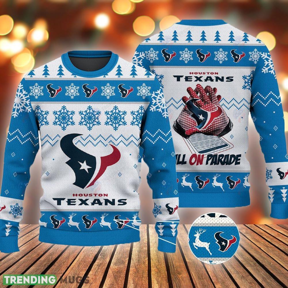 Houston Texans Football Gloves Pattern Knitted Xmas Blue Sweater AOP Gift Christmas Informations: