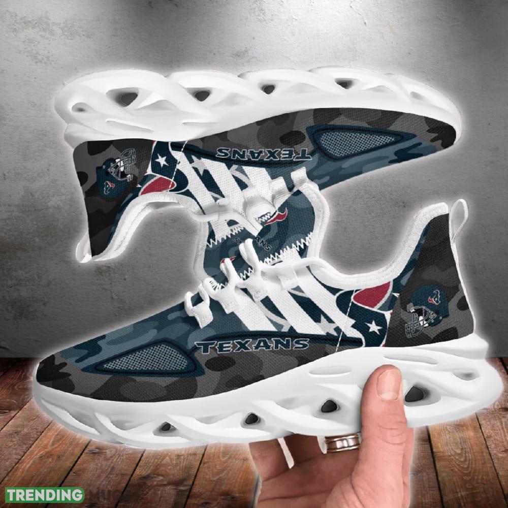 This Houston Texans Military Camouflage Trendy Chunky Shoes New Max Soul Sneakers Men Gift is a breathable, lightweight, and comfortable casual outdoor shoe that has a unique design. It is made of a mesh fabric which makes it sweat absorbent and breathable, while the rubber bottom ensures traction, comfort, and durability. It is available in two colors: black or white sole. There are two styles of shoelace holes so you can choose your preference.