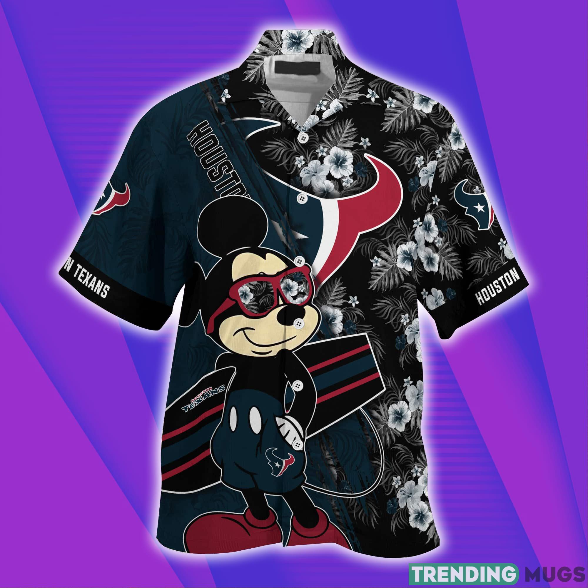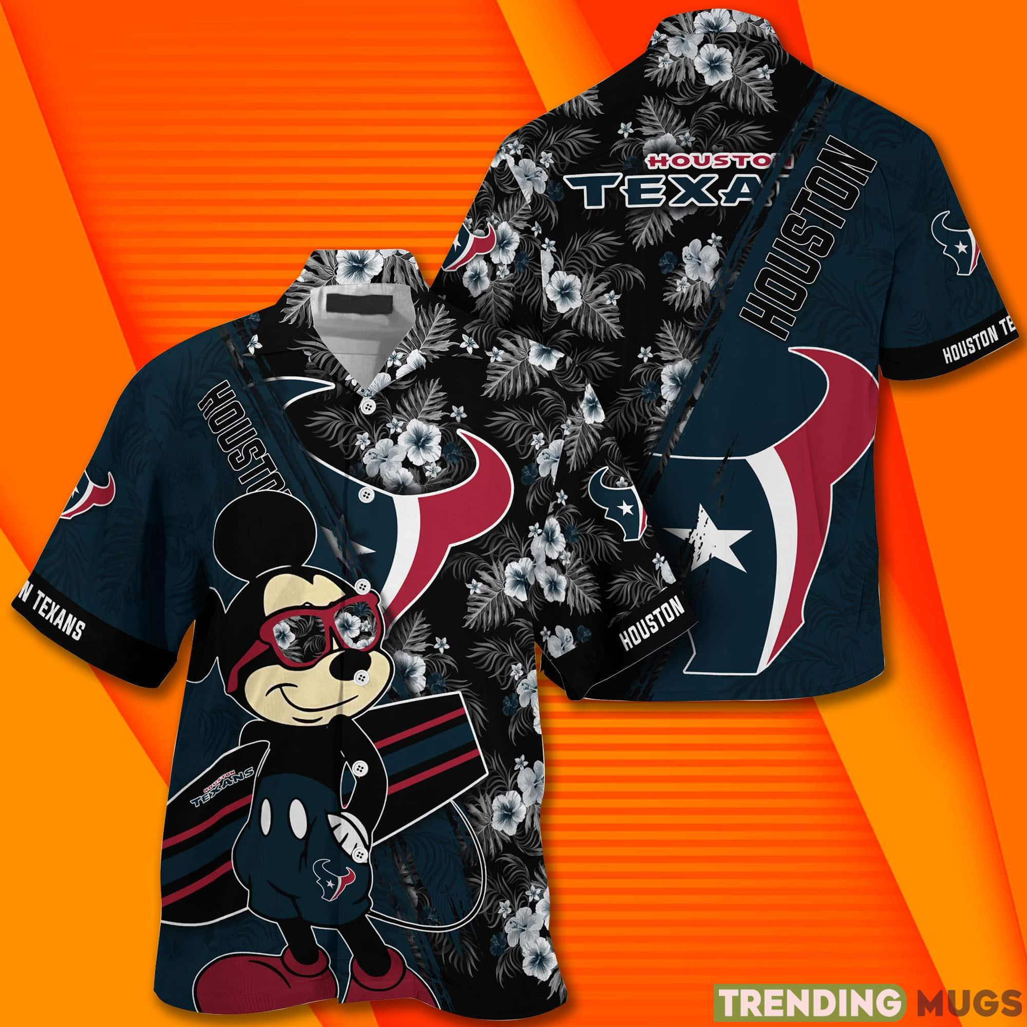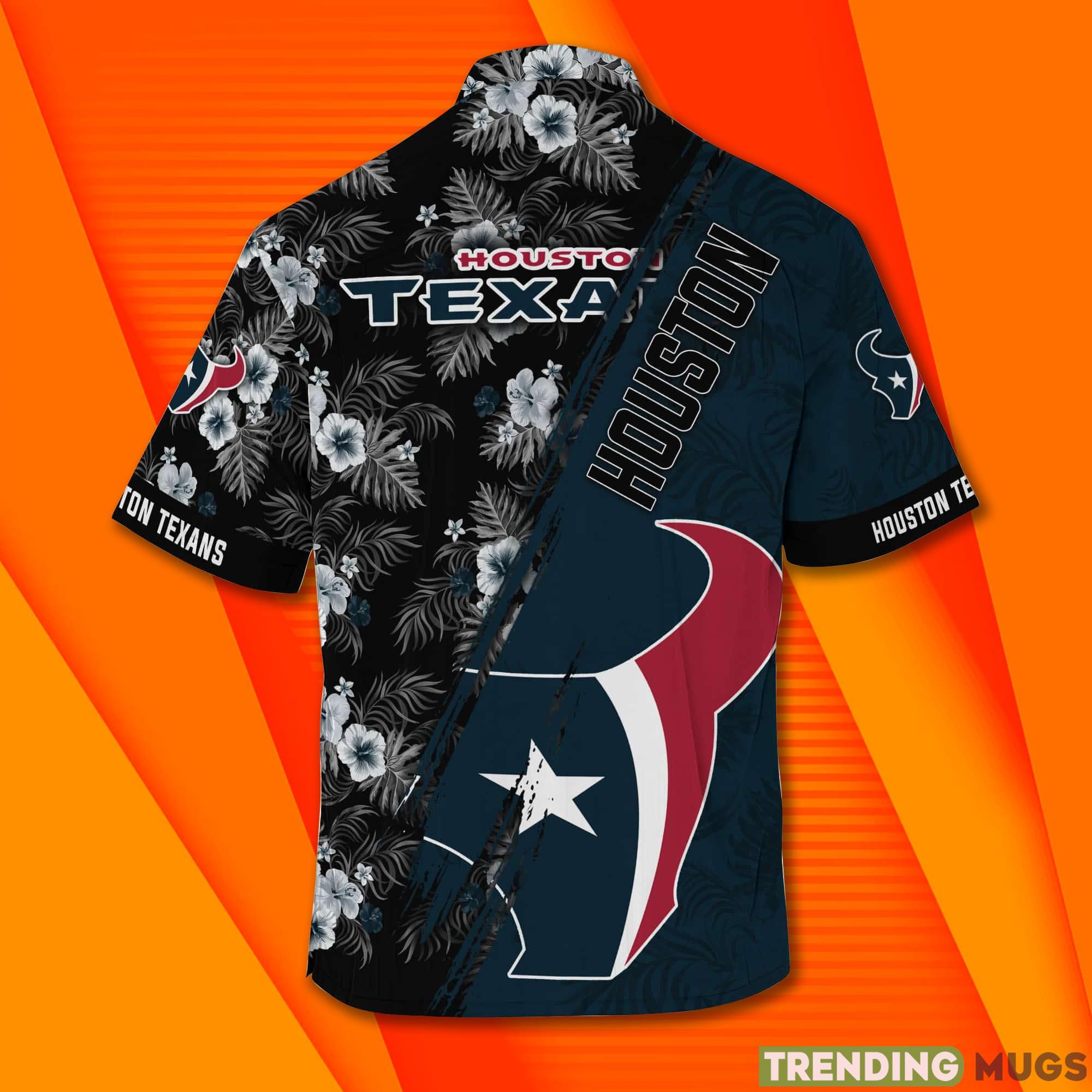 Houston Texans NFL and tropical short sleeve Hawaiian shirt. This shirt is perfect for any fan of the Houston Texans, and is a great way to show your support while keeping cool and comfortable in the summer. The Houston Texans NFL and tropical short sleeve Hawaiian shirt is made with a durable fabric that will withstand repeated wear, and features team graphics on the front along with a tropical print on the back.