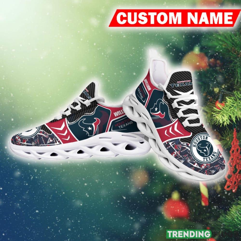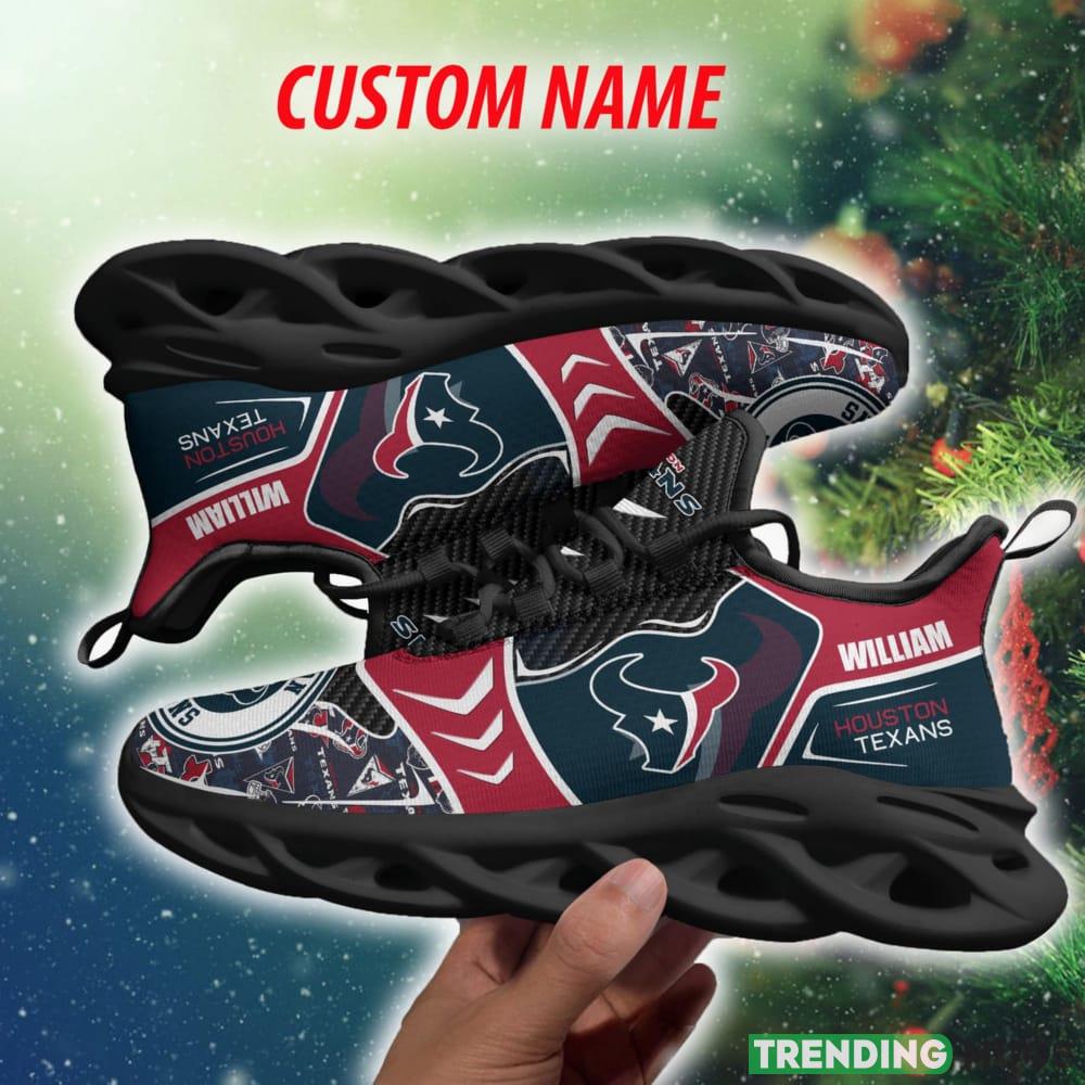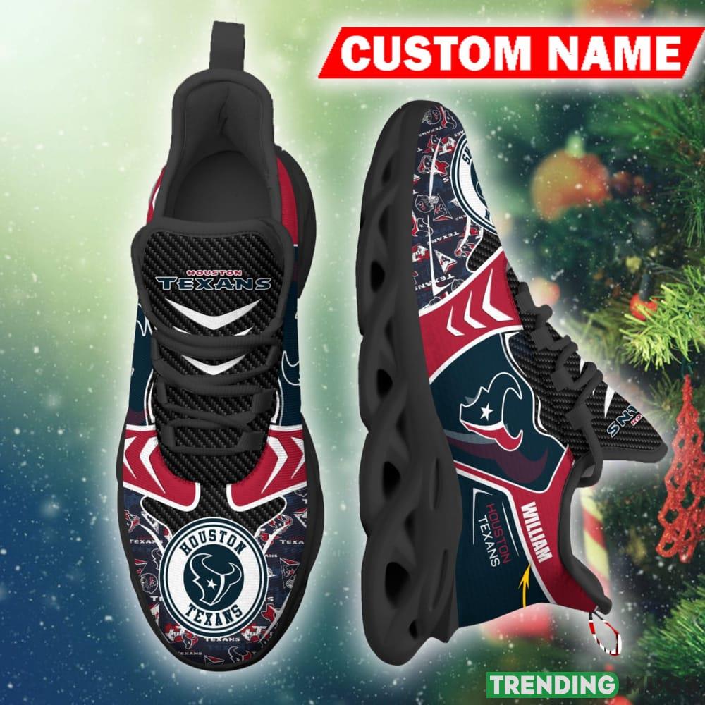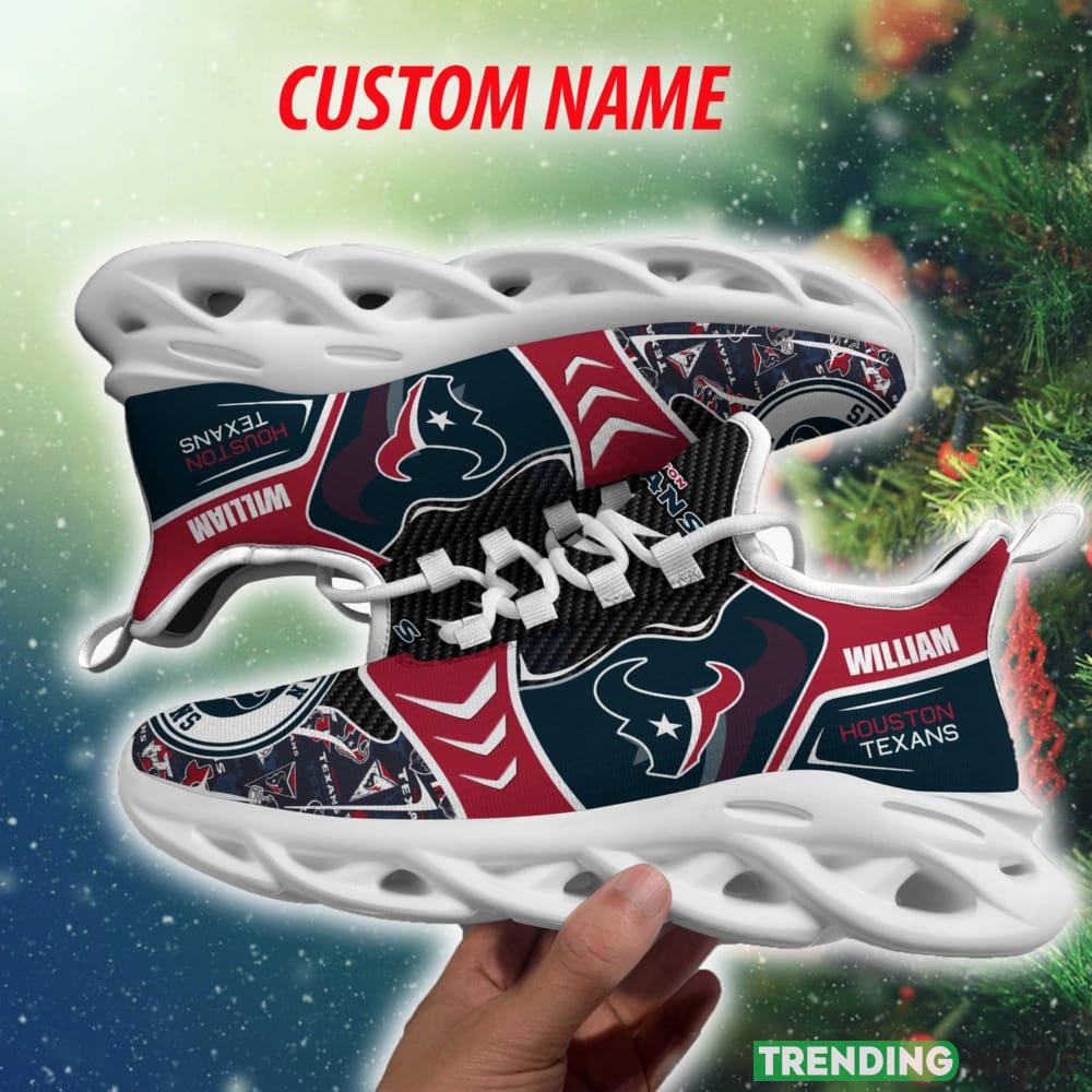This Houston Texans NFL Artistry Personalized Chunky Shoes Fans Gift Max Soul Sneakers New For Men And Women is a breathable, lightweight, and comfortable casual outdoor shoe that has a unique design. It is made of a mesh fabric which makes it sweat absorbent and breathable, while the rubber bottom ensures traction, comfort, and durability. It is available in two colors: black or white sole. There are two styles of shoelace holes so you can choose your preference.