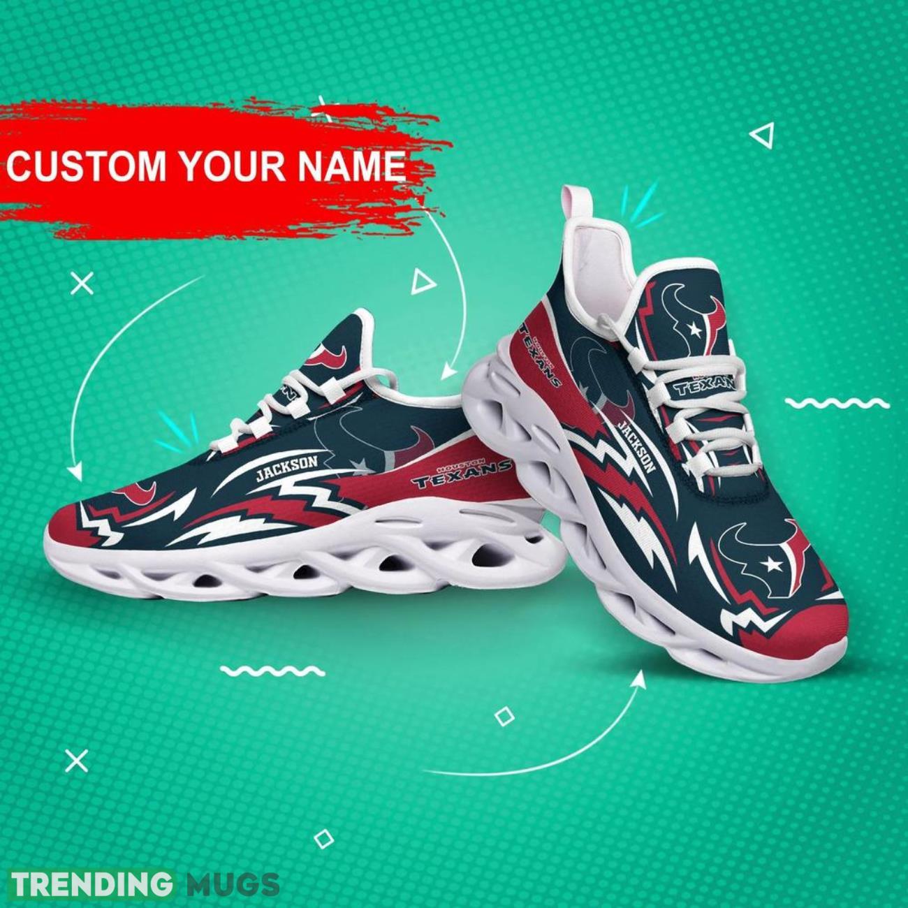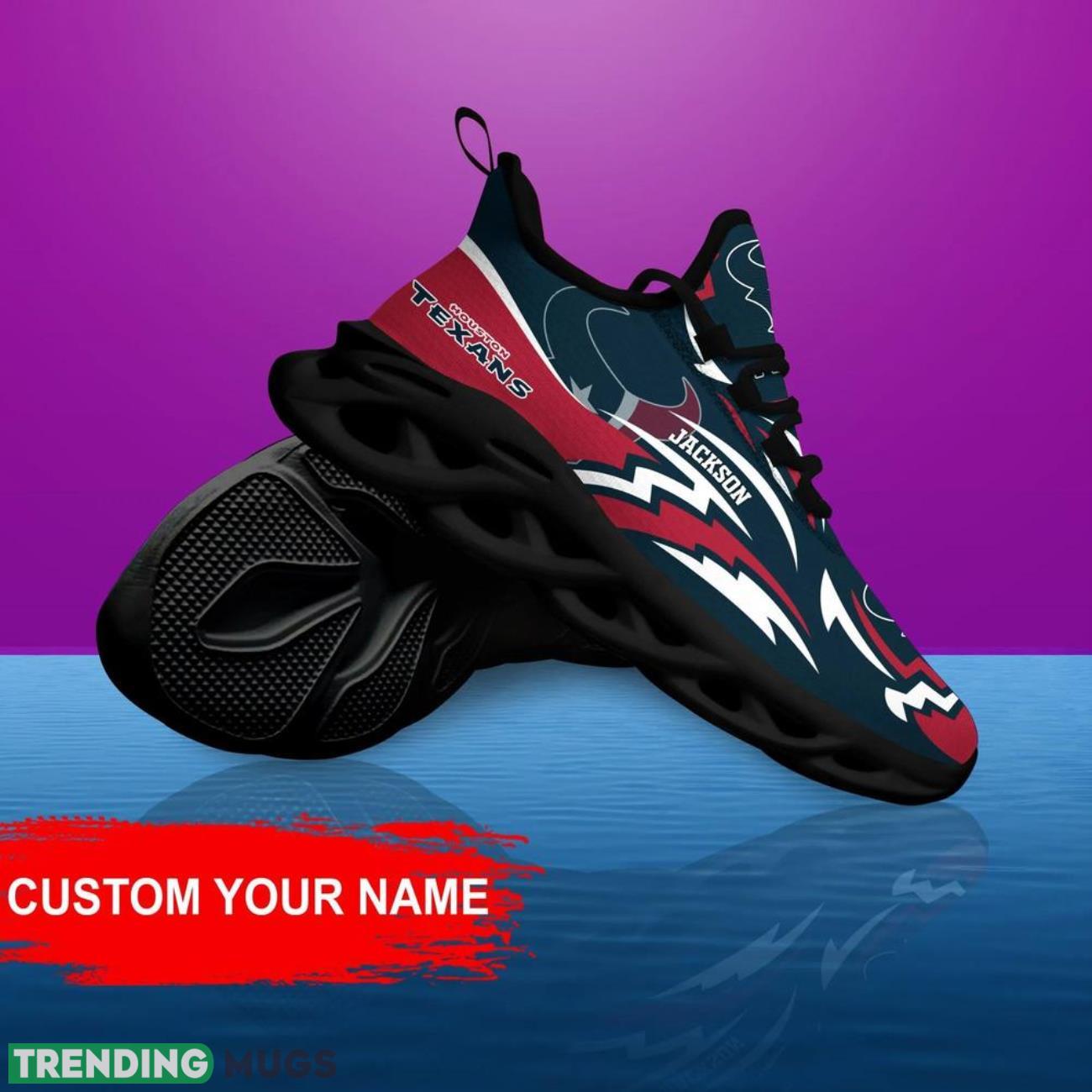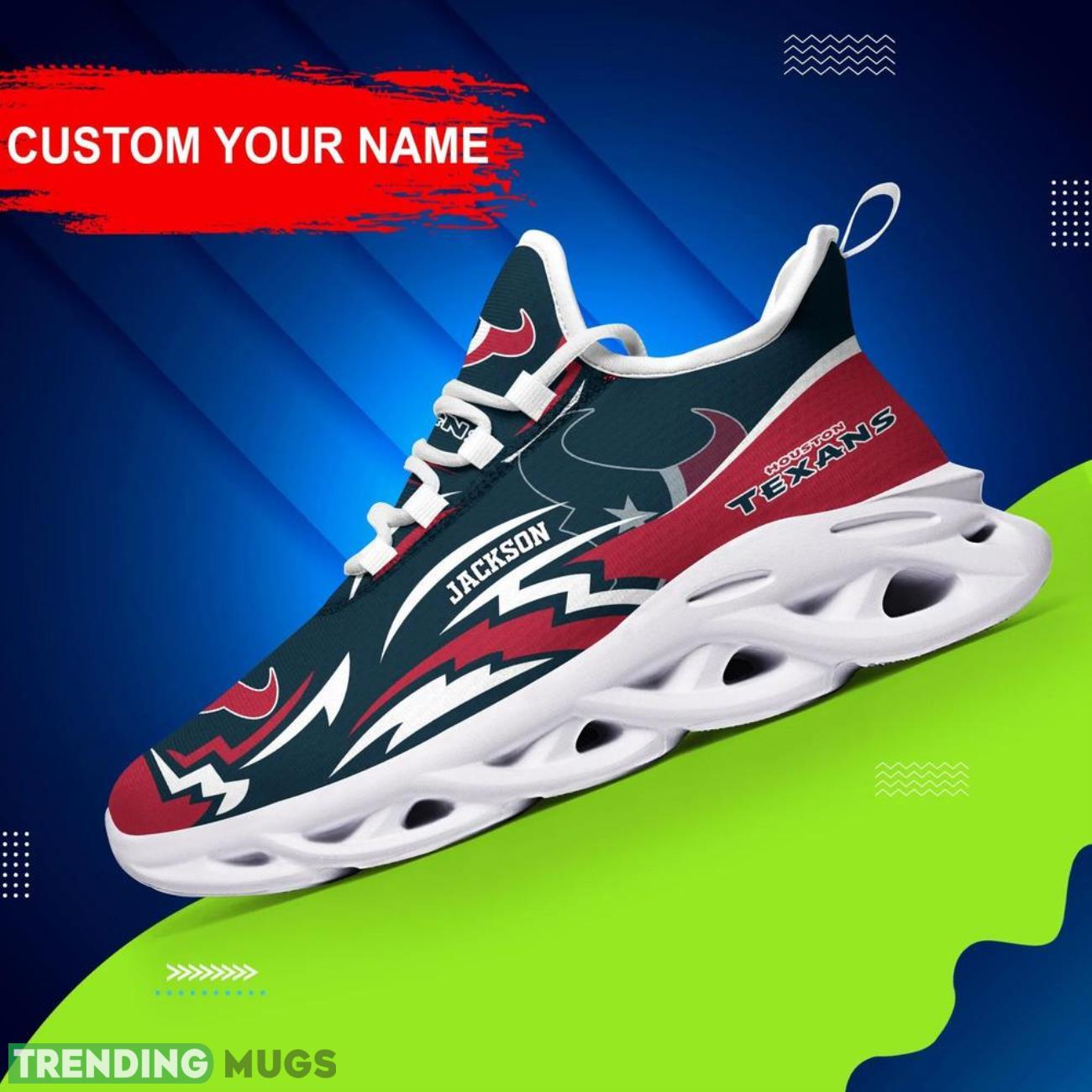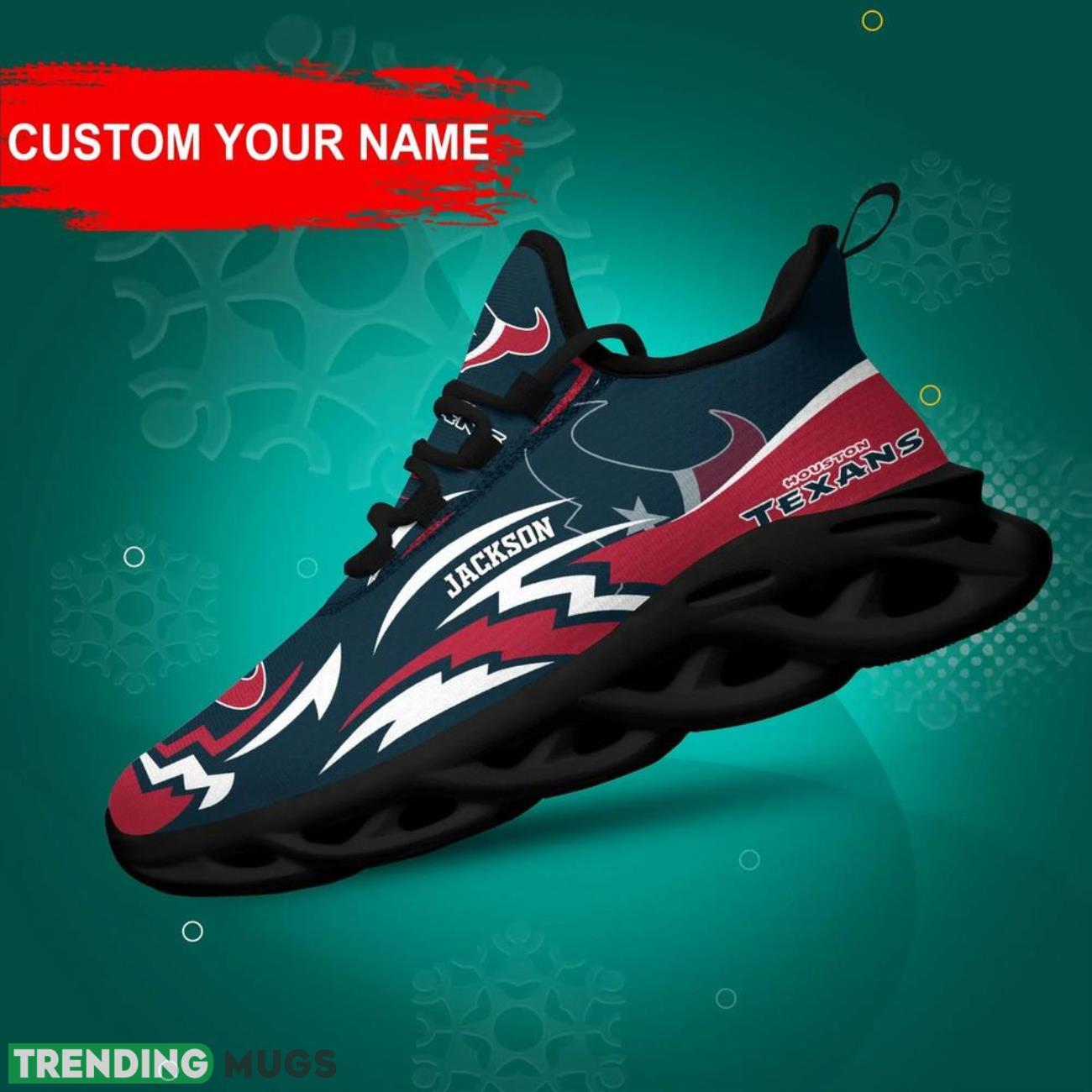 Show off your team pride in style with our Houston Texans NFL Max Soul Shoes! These custom name sneakers are the hottest trend for NFL big fans. Personalize them with your name and stand out from the crowd at every game or event. Made with high-quality materials, these shoes are not only fashionable but also comfortable to wear all day long. Treat yourself or surprise your favorite NFL enthusiast with the perfect personalized gift. Get your hands on these trending sneakers now and elevate your fan gear to the next level!