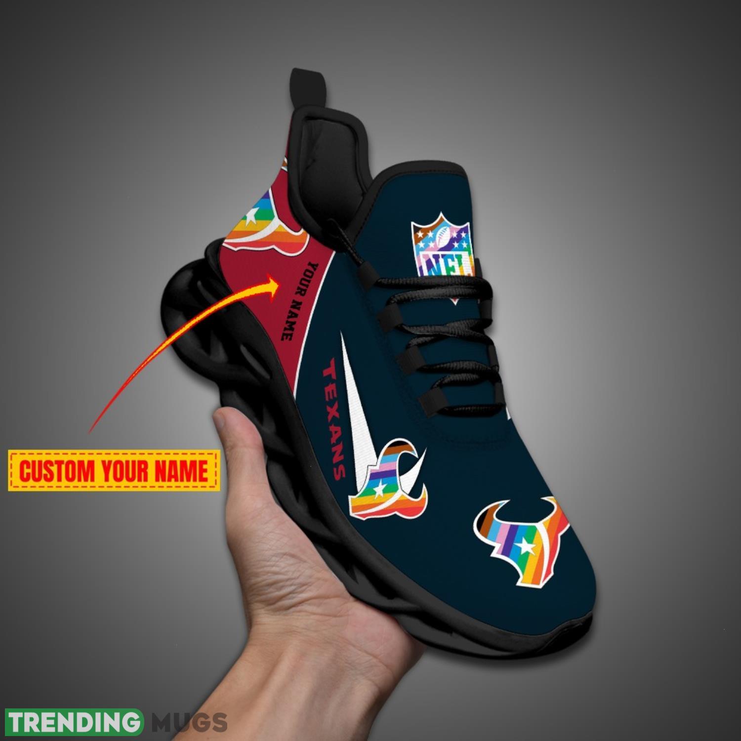 Some of the Houston Texans Personalized Pride Month NFL Max Soul Shoes Custom Name photos