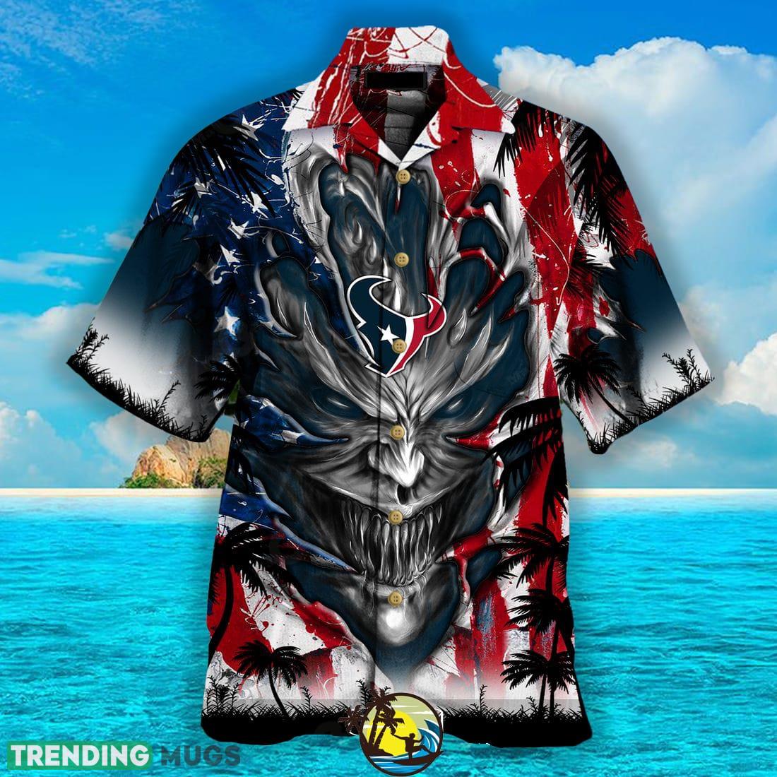 So why wait? Order your Houston Texans US Flag Demon Face 3D Hawaiian Shirt today and show your team spirit in style!
