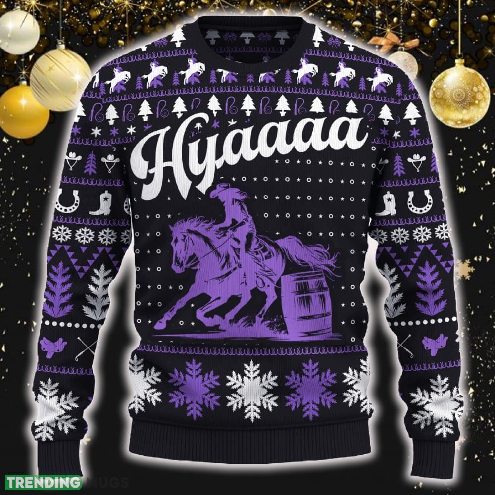 Hyaaaa Barrel Racing Cowgirl Funny Ugly Christmas New Gift For Men And Women – Hyaaaa Barrel Racing Cowgirl Ugly Christmas Sweater_ 1