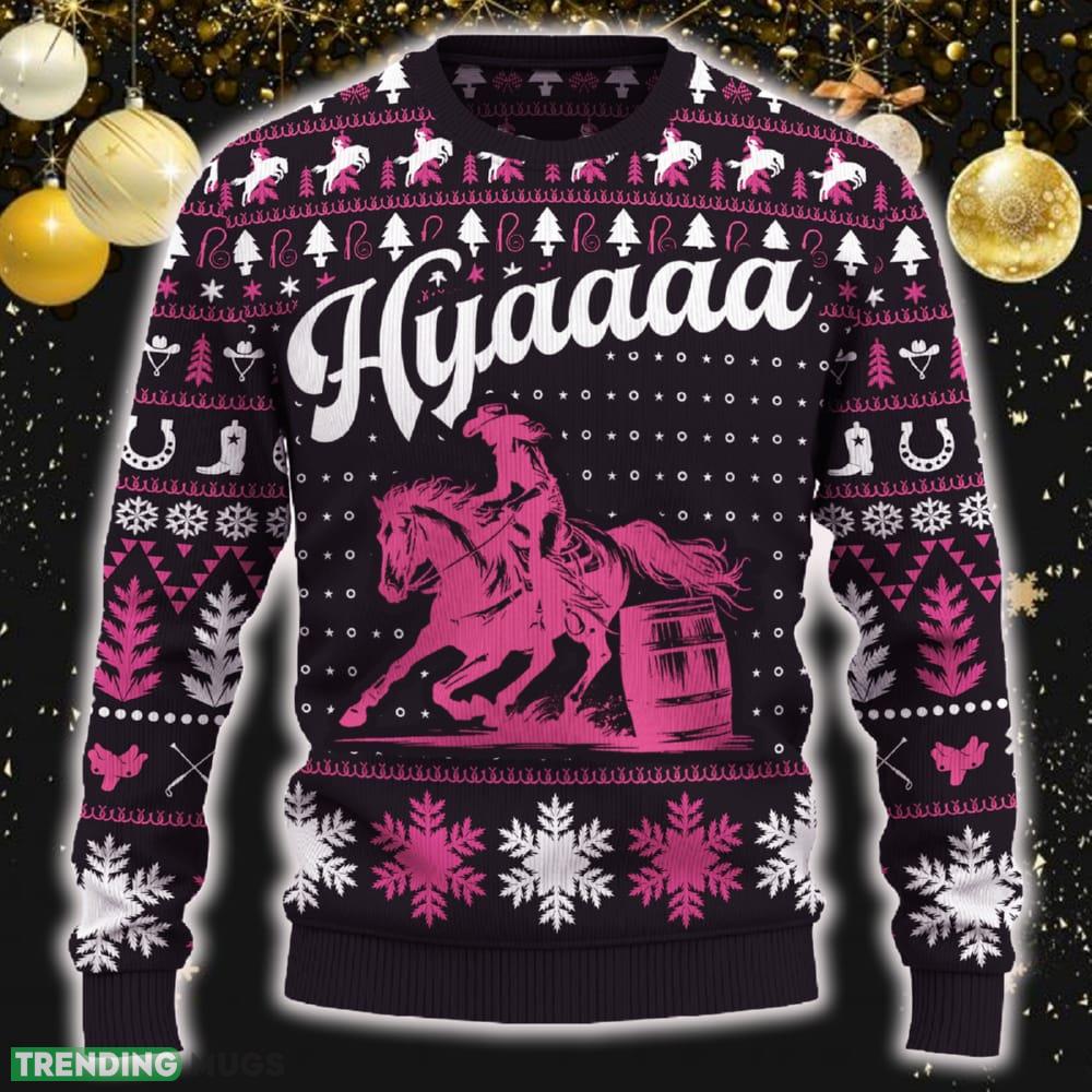 Hyaaaa Barrel Racing Cowgirl Ugly Christmas Sweater New Pattern Tree Holidays Gift Fans Informations: