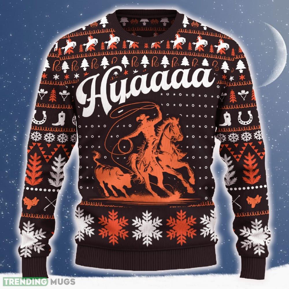 Hyaaaa Calf Roping Christmas Tree AOP Sweater Special Gift For Men And Women – Hyaaaa Calf Roping Ugly Christmas Sweater_ 1