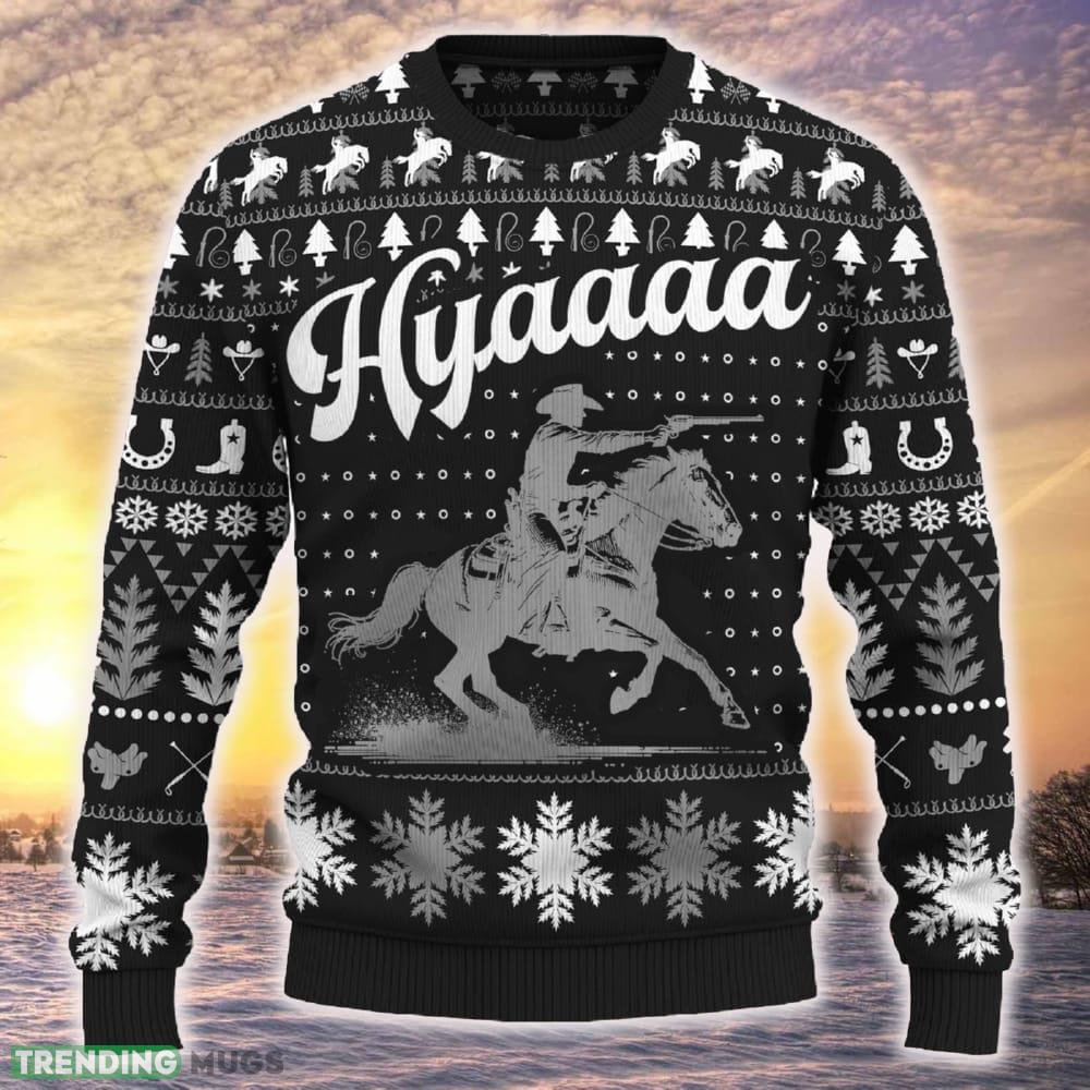Don’t miss out on this extraordinary gift option for your loved ones. Surprise them with a present that combines the magic of Christmas with a touch of adventure. Order your Hyaaaa Mounted Shooting Christmas Tree 3D Sweater now and experience the joy of the holidays in a whole new way!