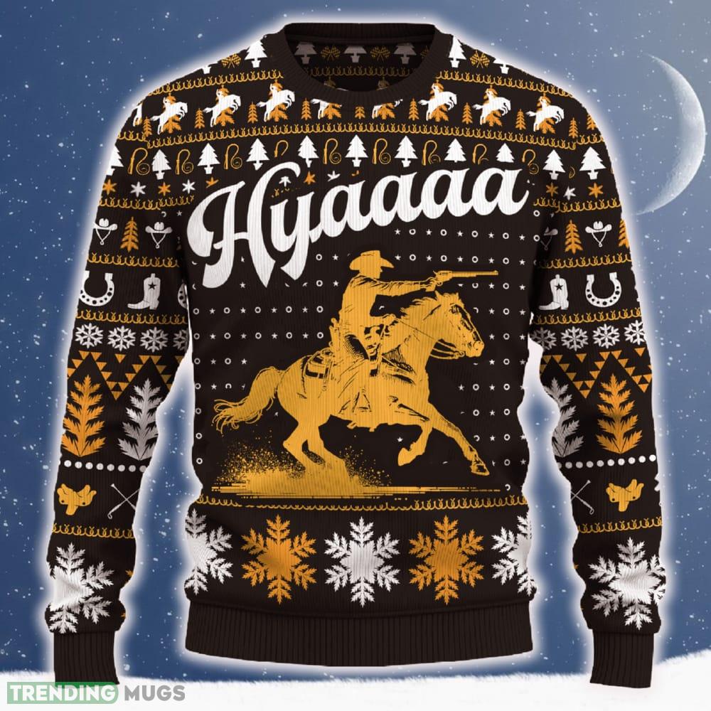 Don’t miss out on this one-of-a-kind holiday essential. Order the Hyaaaa Mounted Shooting Ugly Christmas Sweater now and make this festive season truly memorable for yourself or your loved ones.