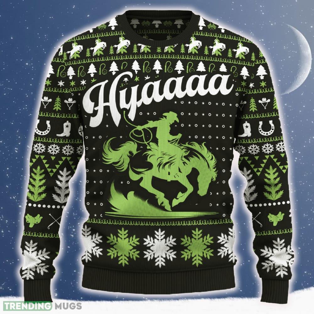 Hyaaaa Saddle Bronc Riding Sweater Merry Gift Fans For Men And Women Holidays Christmas – Hyaaaa Saddle Bronc Riding Ugly Christmas Sweater_ 1