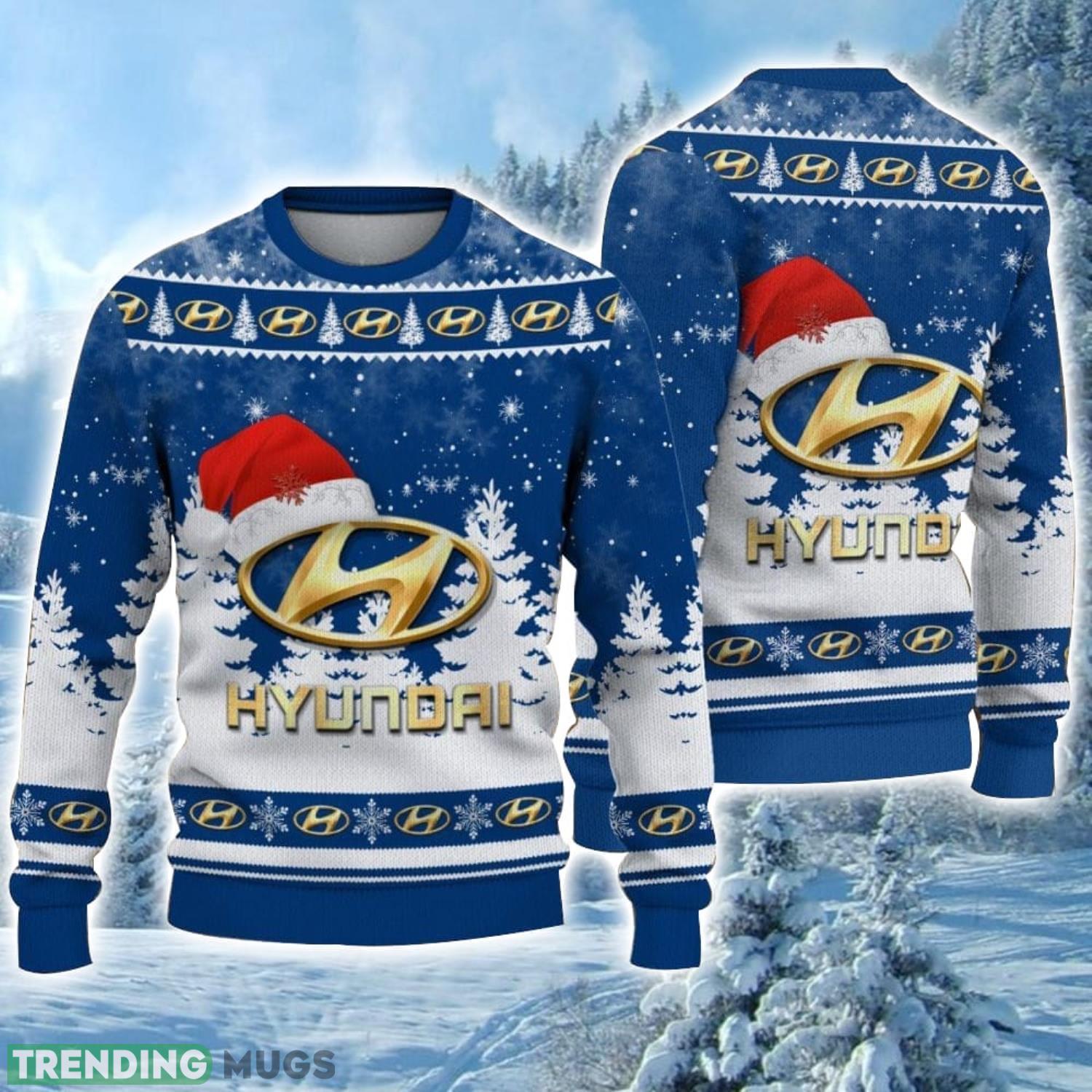 Hyundai Logo Wearing Santa Hat Christmas Gift Ugly Christmas Sweater For Car Lover 3D Sweater Informations: