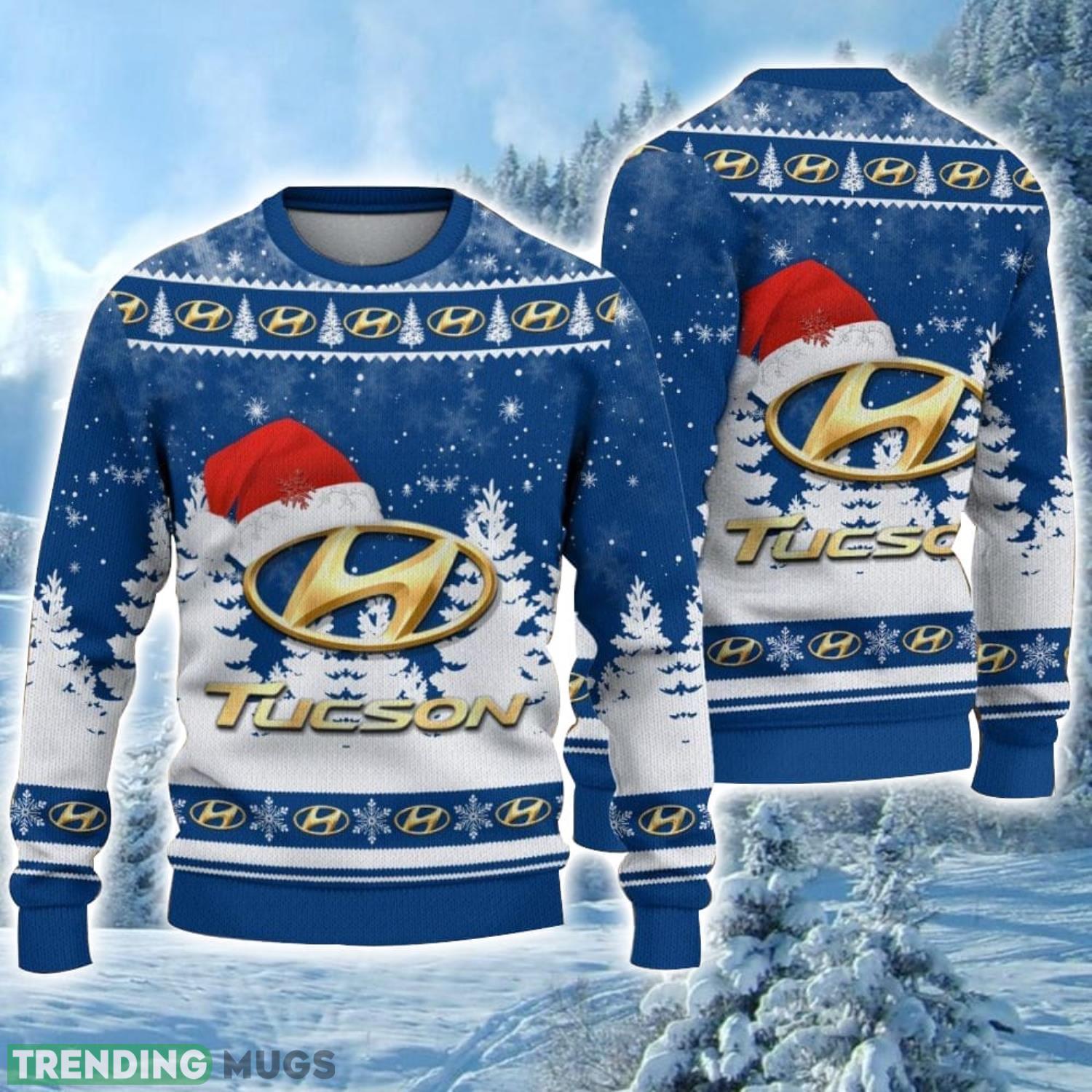 Hyundai Tucson Logo Wearing Santa Hat Christmas Gift Ugly Christmas Sweater For Car Lover 3D Sweater Informations: