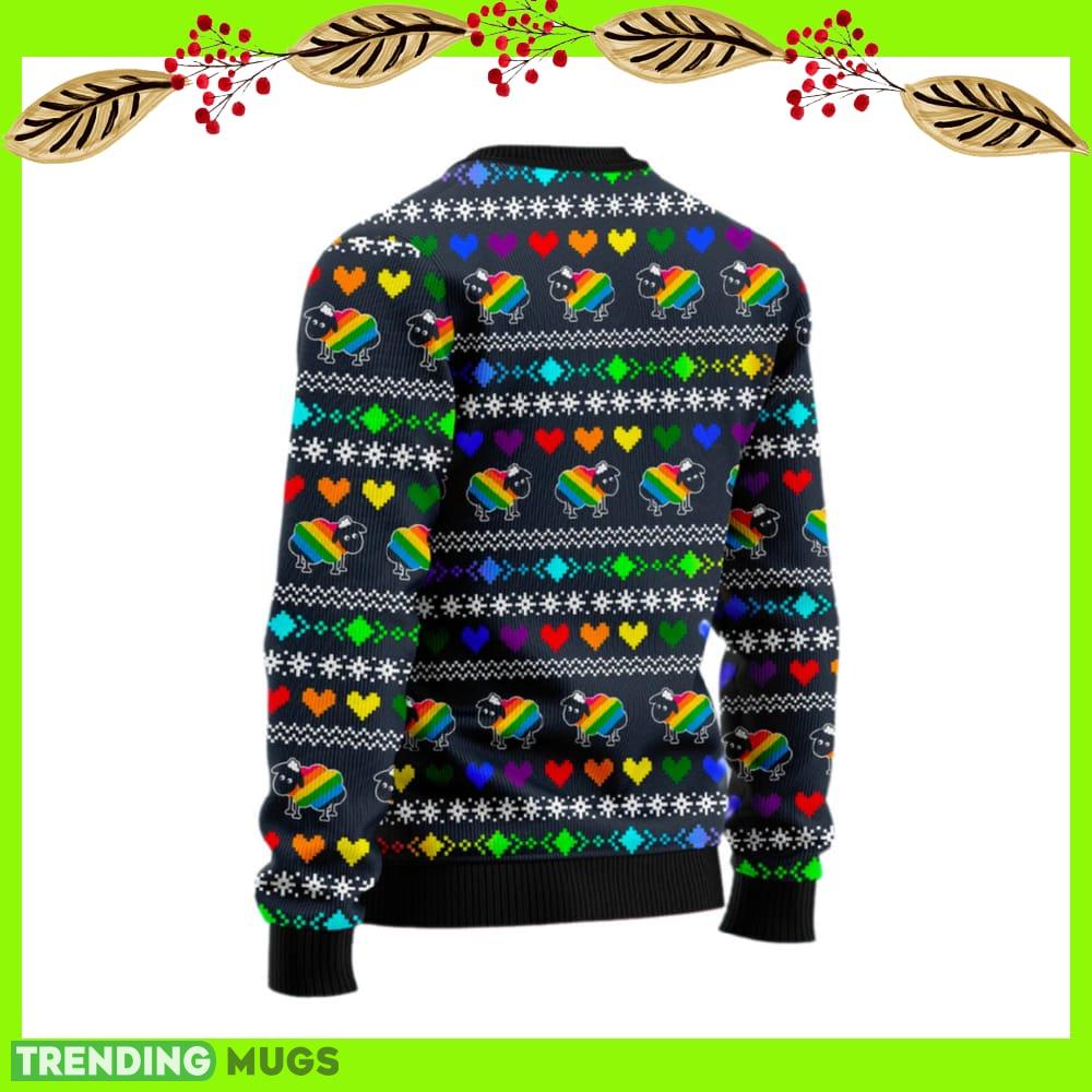 Made from high-quality materials, this Christmas sweater guarantees ultimate comfort and warmth throughout the chilly winter days. The vibrant rainbow sheep design on the front is sure to turn heads and spark conversations at any holiday gathering.