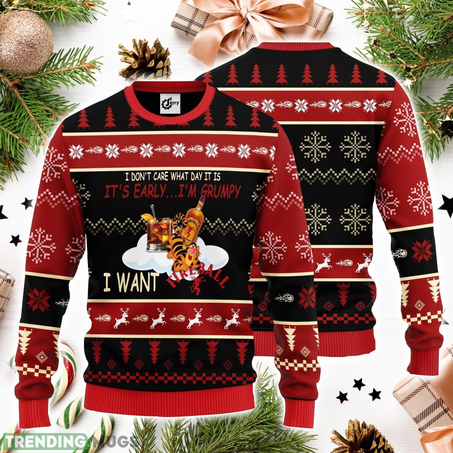 I Don't Care What Day It Is It's Early I'm Grumpy I Want Fireball 3D Ugly Christmas Sweater Unisex Sweater Christmas Gift Product Photo 1