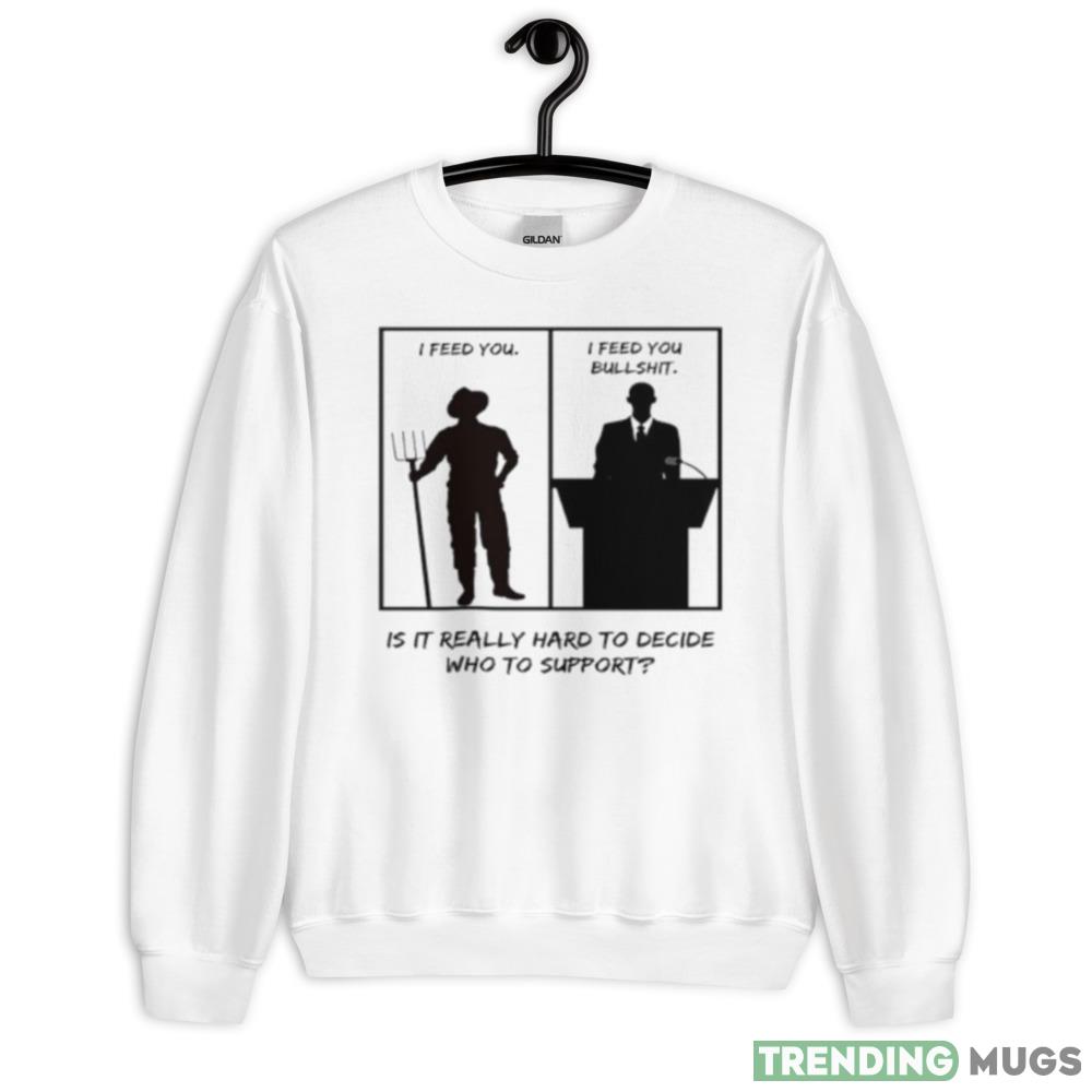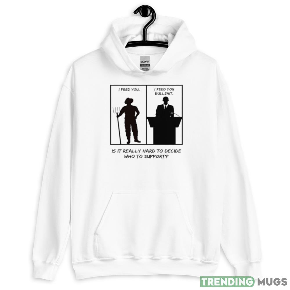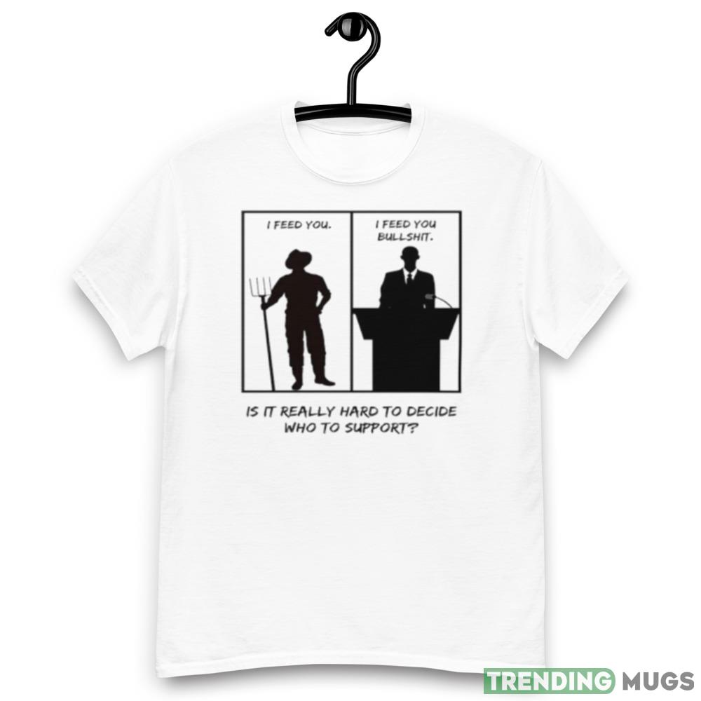 Whether you are wearing it to a protest, a social gathering, or simply as a casual outfit, this “I feed you I feed you bullshit is it really hard to decide who to support shirt” is sure to turn heads and make a lasting impression. So why wait? Order yours today and showcase your unique style and personality with this amazing shirt!