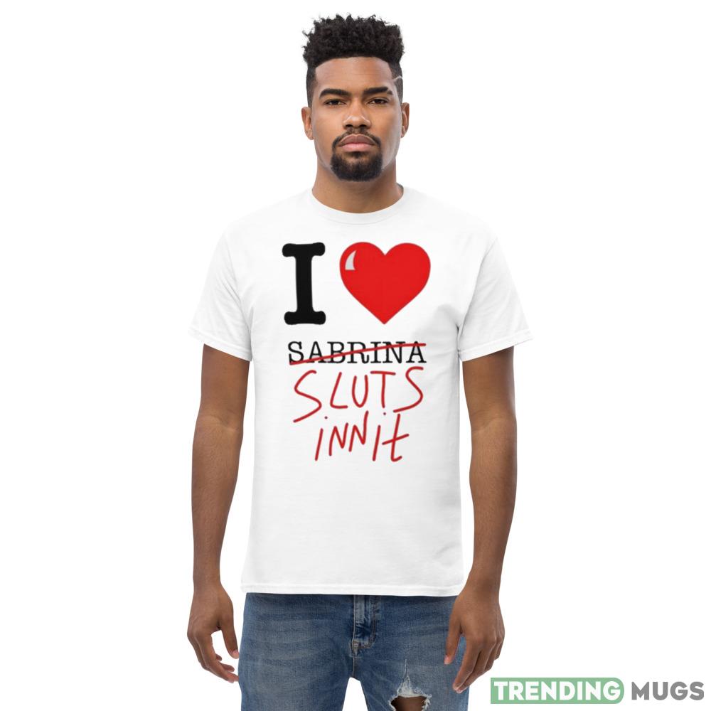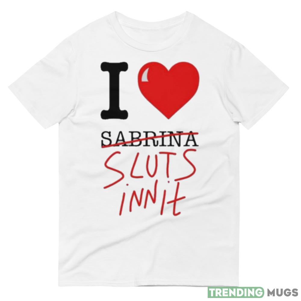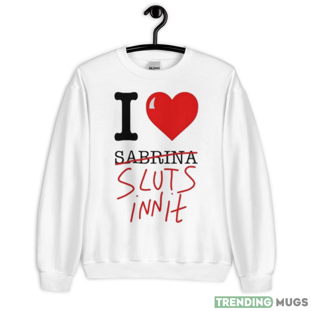 The I Heart Sabrina Sluts Innit shirt is the perfect addition to your wardrobe! This shirt is made of high-quality material that will keep you comfortable all day long. The design is bold and eye-catching, featuring a stylish “I Heart Sabrina Sluts Innit” slogan that’s sure to turn heads. Whether you’re out with friends or running errands, this shirt is the perfect choice. It’s versatile enough to pair with jeans, shorts, or even a skirt, making it a must-have for any fashion-forward individual. Don’t miss out on the chance to make a statement with the I Heart Sabrina Sluts Innit shirt!