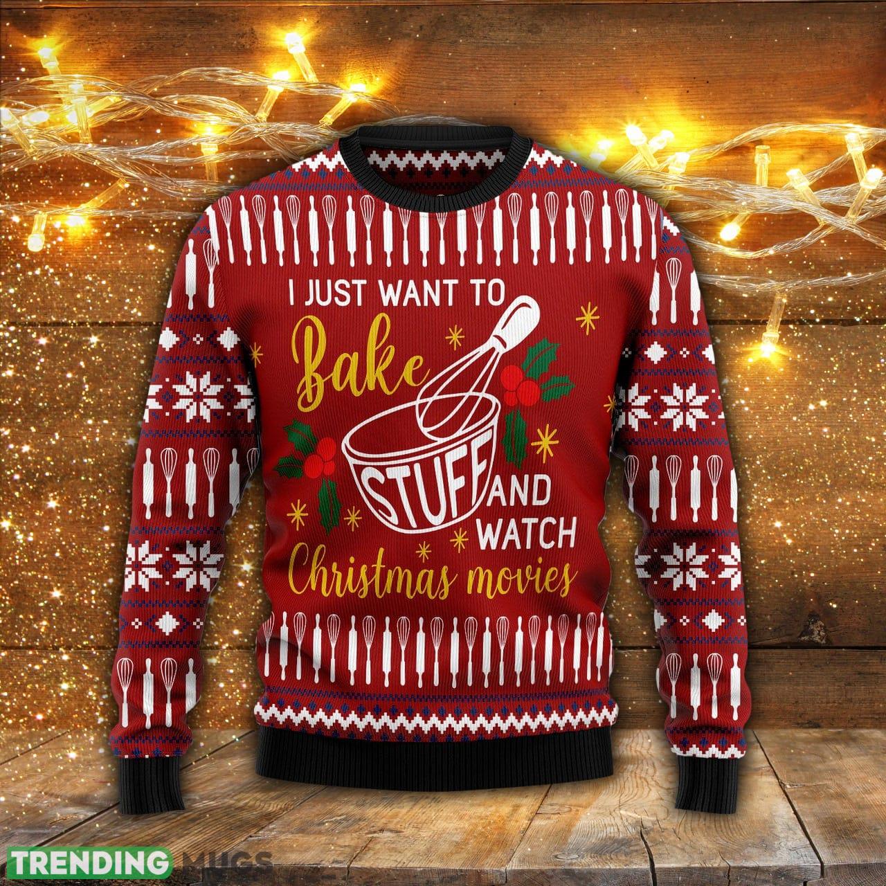 I Just Want To Bake Stuff And Watch Ugly Christmas Sweater Men And Women Gift For Christmas