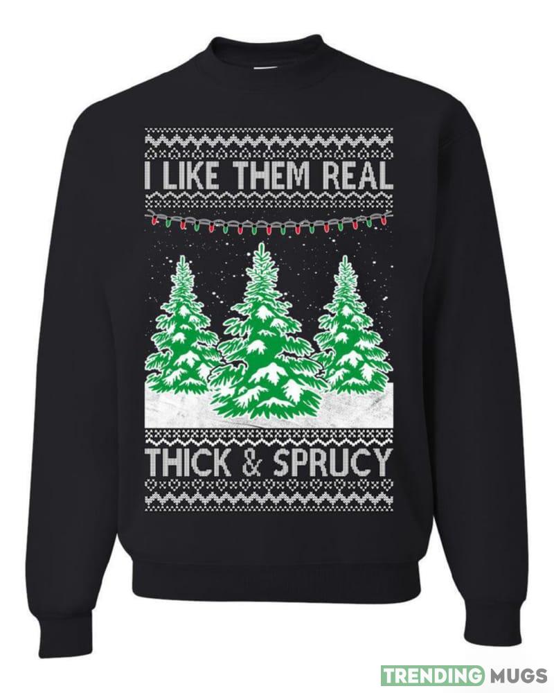 I Like Them Real, Thick & Sprucy Humor Adult T Shirt Sweatshirt For Men And Women Gift Ugly Christmas – I Like Them Real, Thick & Sprucy Humor Adult Ugly Christmas Sweater Sweatshirt_1